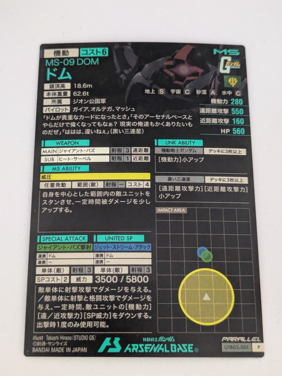★即決★ 機動戦士ガンダム アーセナルベース P PARALLEL ドム UTB05-001 UTブースター UT5弾 パラレル