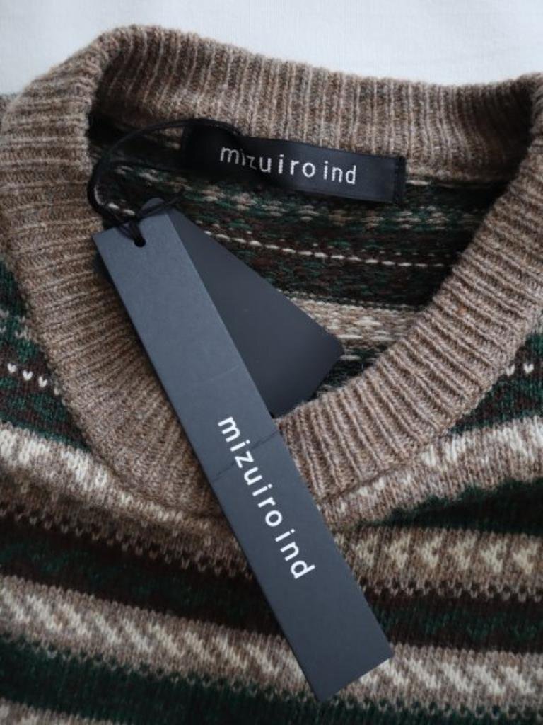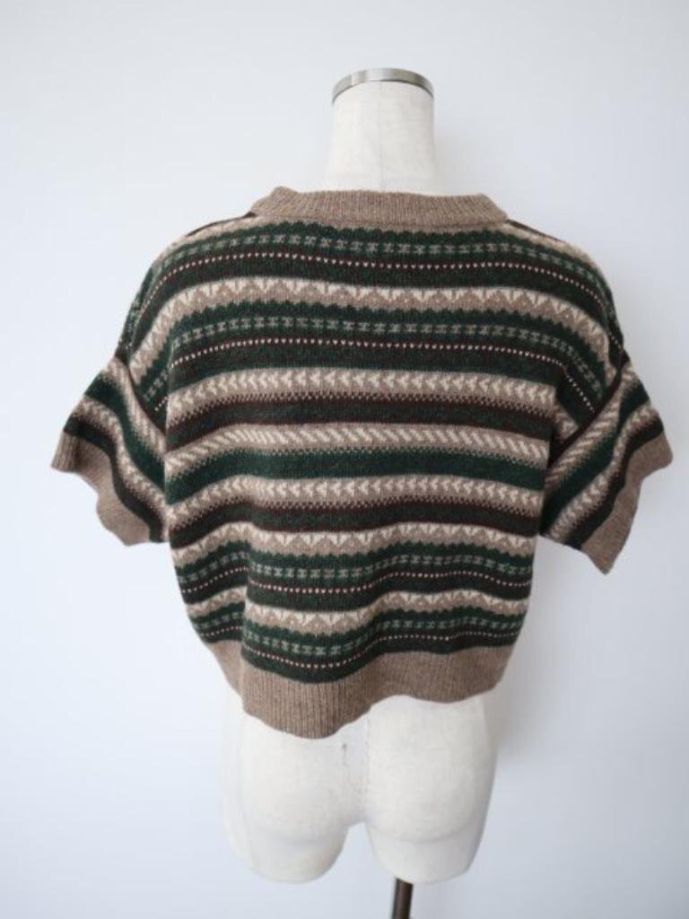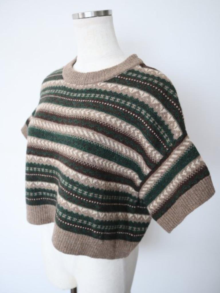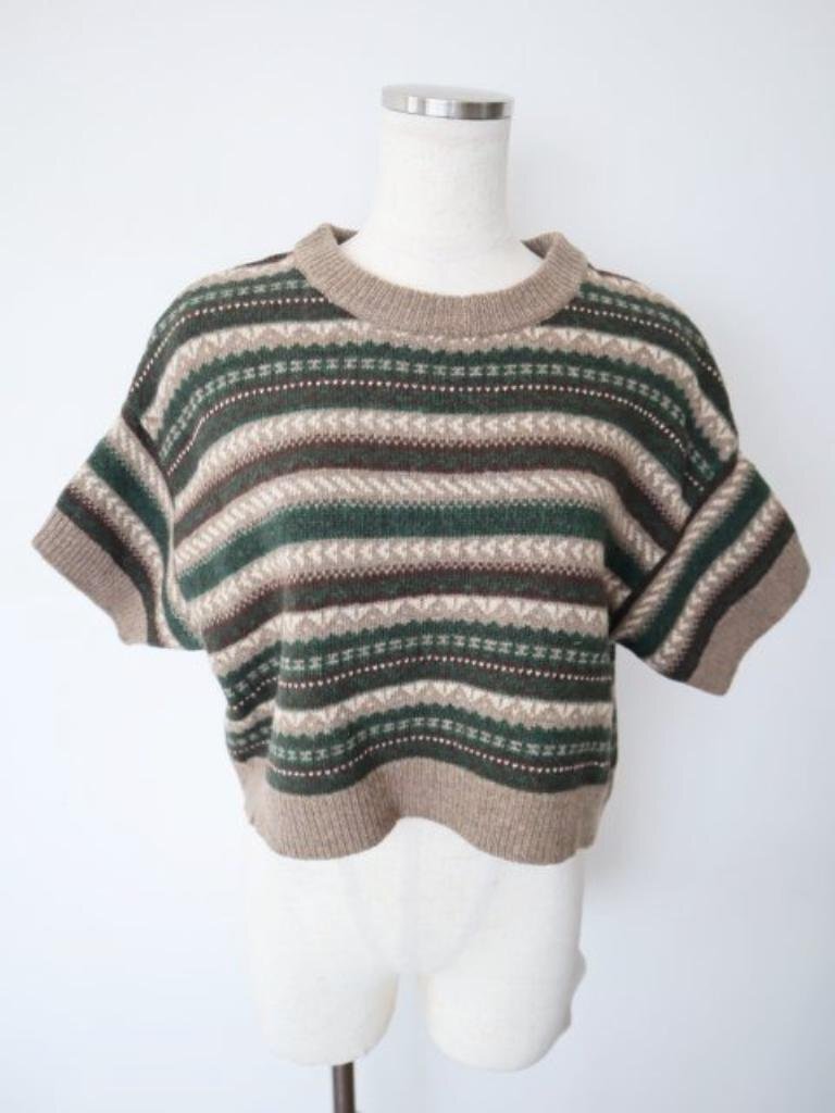 新品タグ付き【送料込】mizuiroind ジャガードショートプルオーバー F(フリー) ブラウン モスグリーン オフホワイト他 6458655