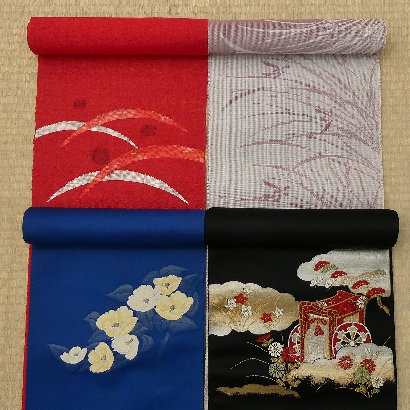 ◆名古屋帯○4点/夏物・含/花柄等/新品/未仕立て/化繊・他/(梱包サイズ:80)◆* コメント・全体的に薄汚れ・薄い色ヤケがあります。 ・新品のお品も含まれておりますが、経年保存されていたお品ですので、ご理解のある方のご入札をお願い致します。 ・未仕立て品ですので、着用にはお仕立が必要です。当店でもお仕立てを受け賜わっております。お仕立て代は下記の「お仕立て価格表」をご参考ください。 ・ ・ * 品質・サイズ -- 着物サイズ目安 -- ・ ・ ・ ・※一部商品のみのお取引はお断り致しております。入札前・落札後に一部の商品のみのお取引交渉や発送方法(メール便等利用)の交渉はご遠慮下さい。サイズ・発送詳細を必ずご確認のうえ、ご理解・ご納得のうえでのご入札をお願い致します。 ・梱包サイズ:80サイズ(発送詳細必読) * 程度 当社基準ランク・・・【4】