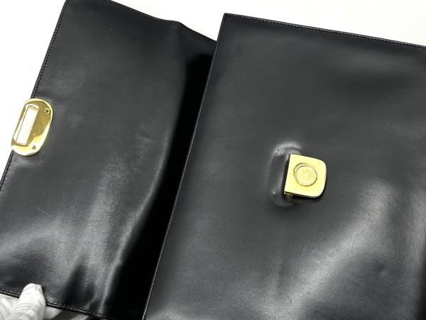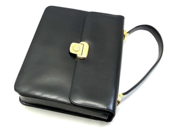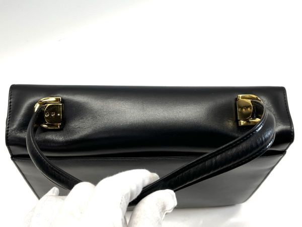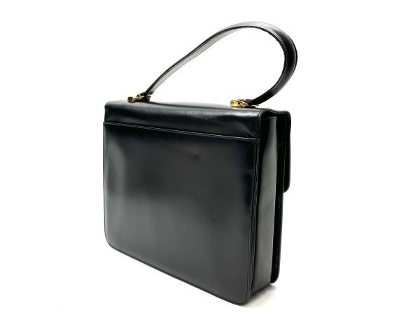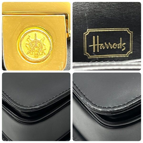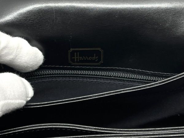 【K891】ハロッズ/Harrods レザー フラップ ワンハンドル ハンドバッグ 手提げ 鞄 ブラック ゴールド金具 b | ||