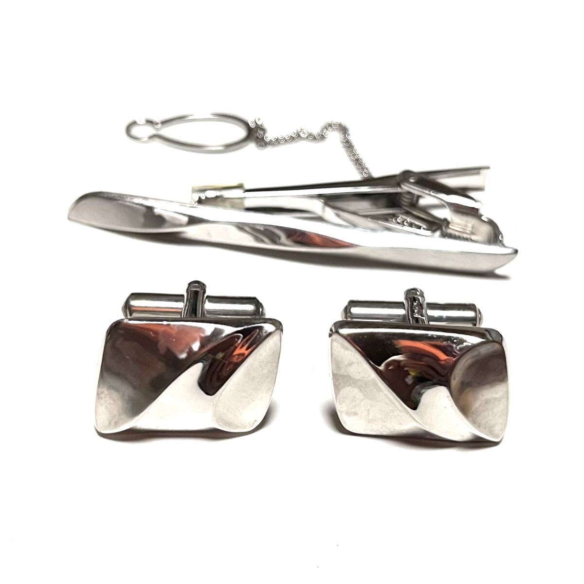 素材について詳しいことは分かりませんが、カフスとタイピンにそれぞれK14WGとSILVERの刻印があります。