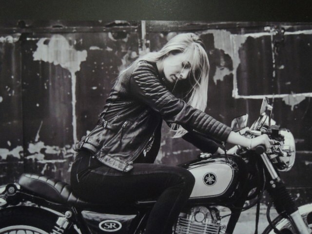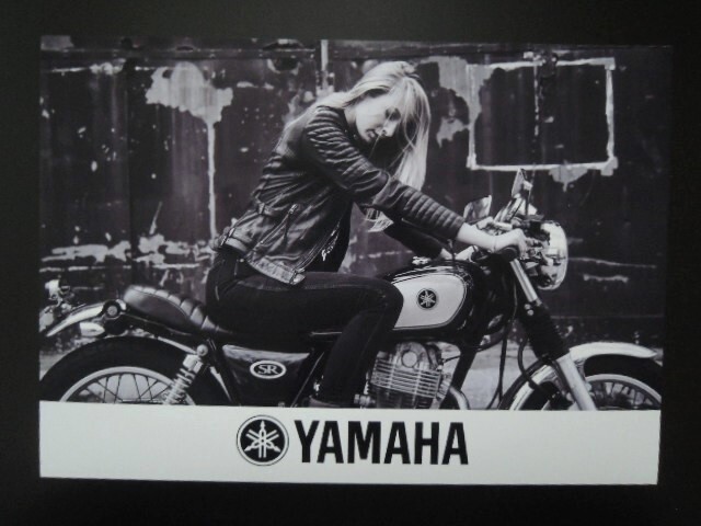 A4 額付き ポスター SR400 バイク 金髪 モデル YAMAHA ライダース 美女 キック スタート SR500 駐車 PARKING