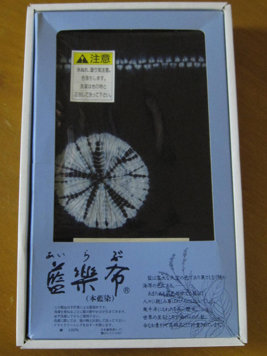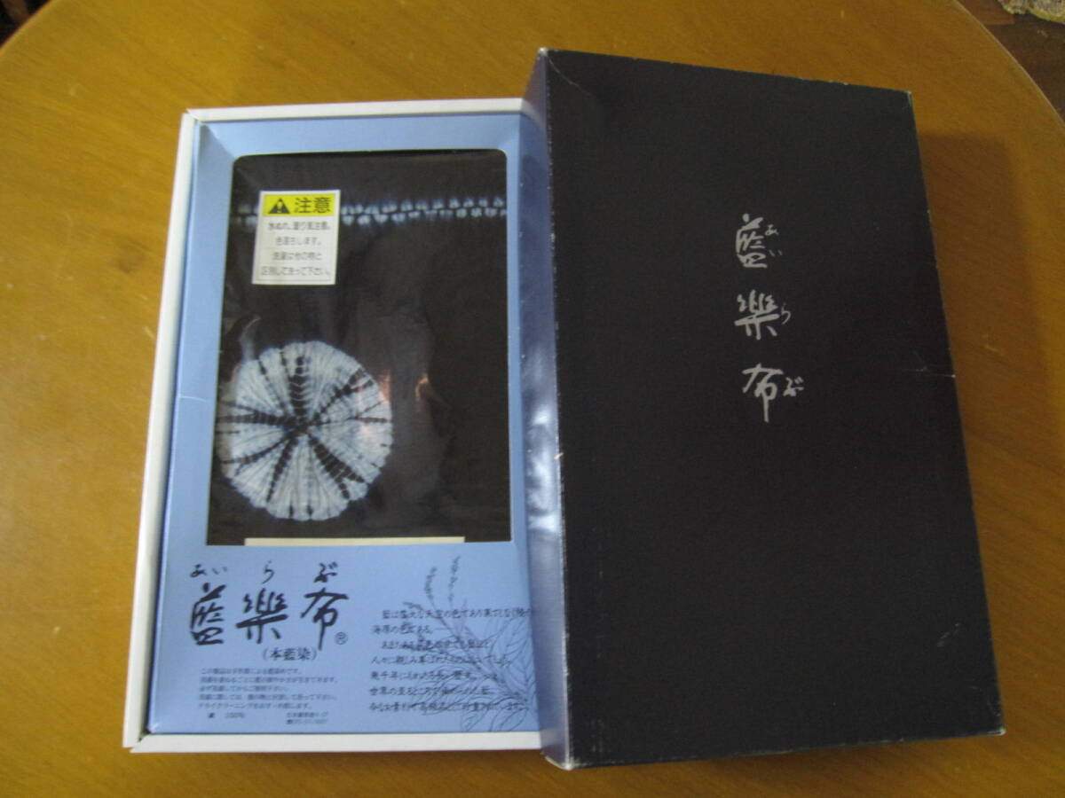 藍染 テーブル クロス 新品 藍楽布 花 模様 額取り葵 未開封 ギフト 箱有 贈答 秋 冬 可愛い お洒落 綿 祝 未使用 マルチ インテリア 家庭