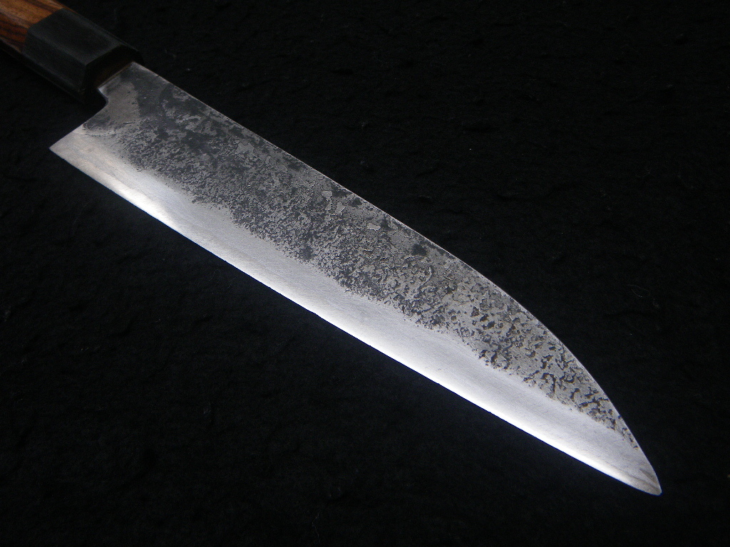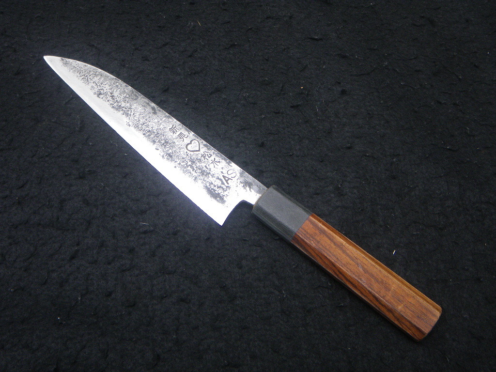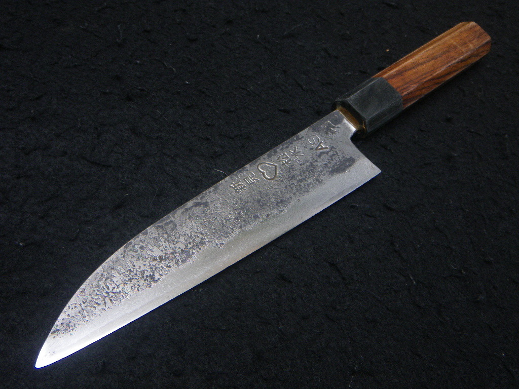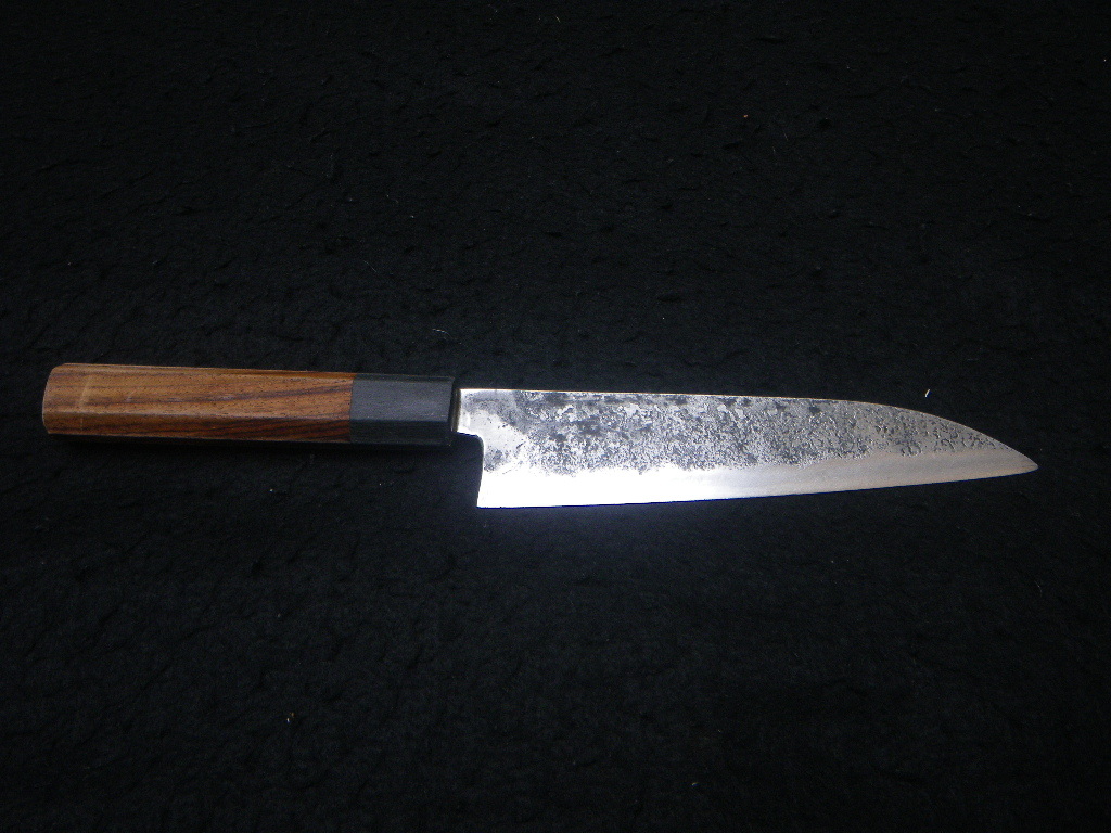 刃毀ジャンク 159㎜ 黒打 両刃 和式万能型 三徳庖丁 薄刃包丁 水牛八角柄 日本製 Japan kitchenknife