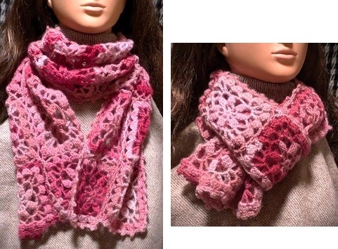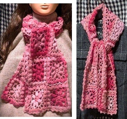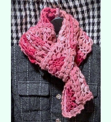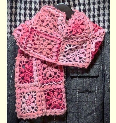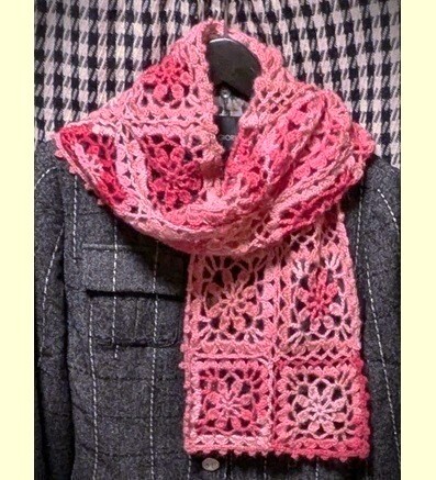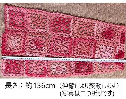 手編み◇ウール100%◇お花モチーフ繋ぎ*ストール/マフラー◇一巻きサイズ◇ストロベリー&ピーチ系◇ハンドメイド◇送料込