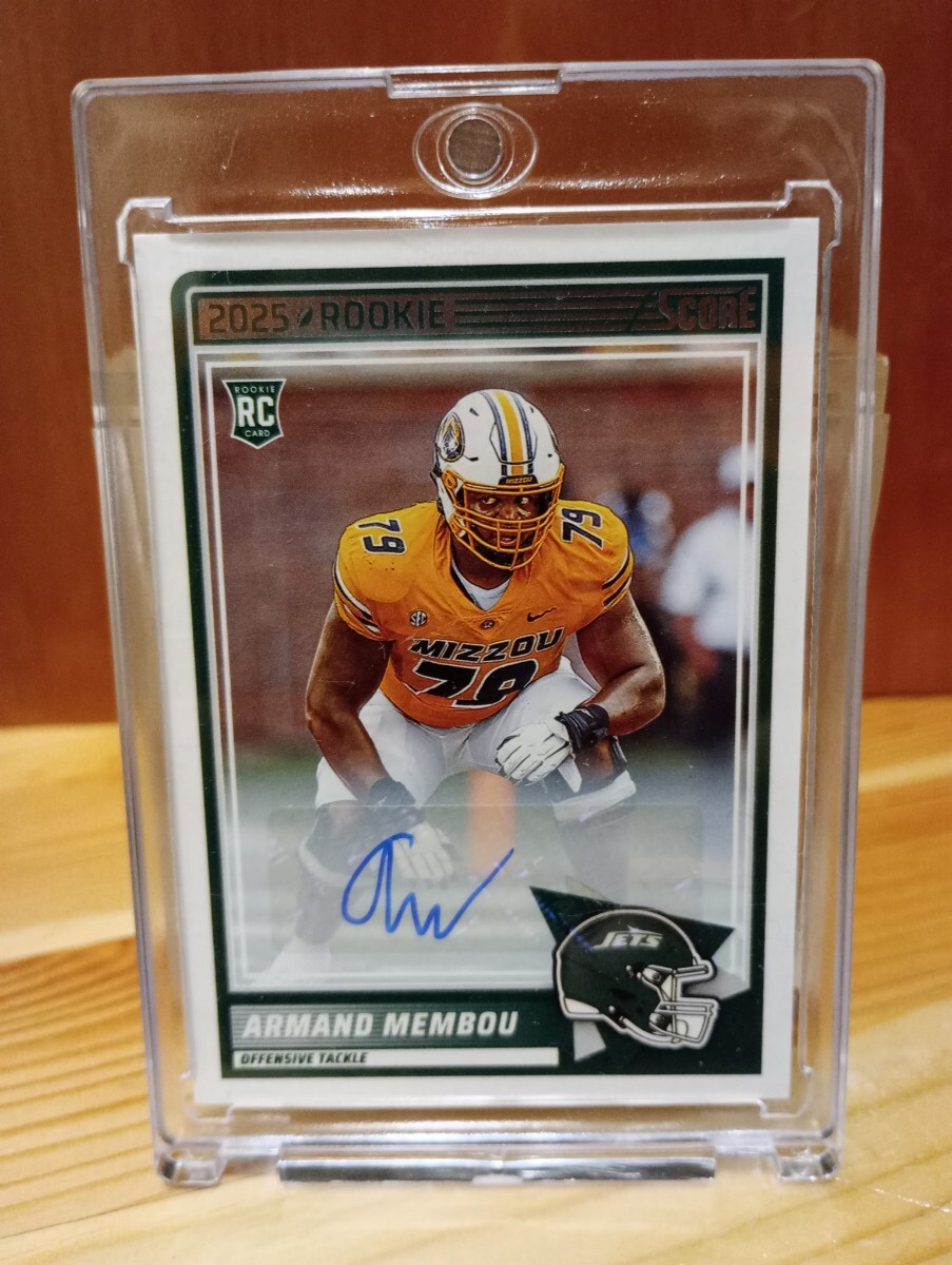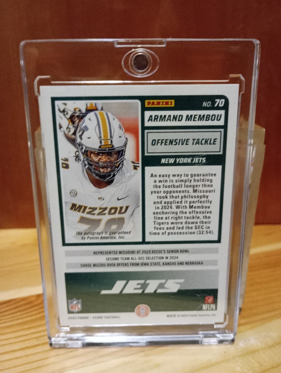 2025年NFLドラフトでNYジェッツに1巡目指名された、ミズーリ大のタックル、アーマンド・メンボウのサインカードです。