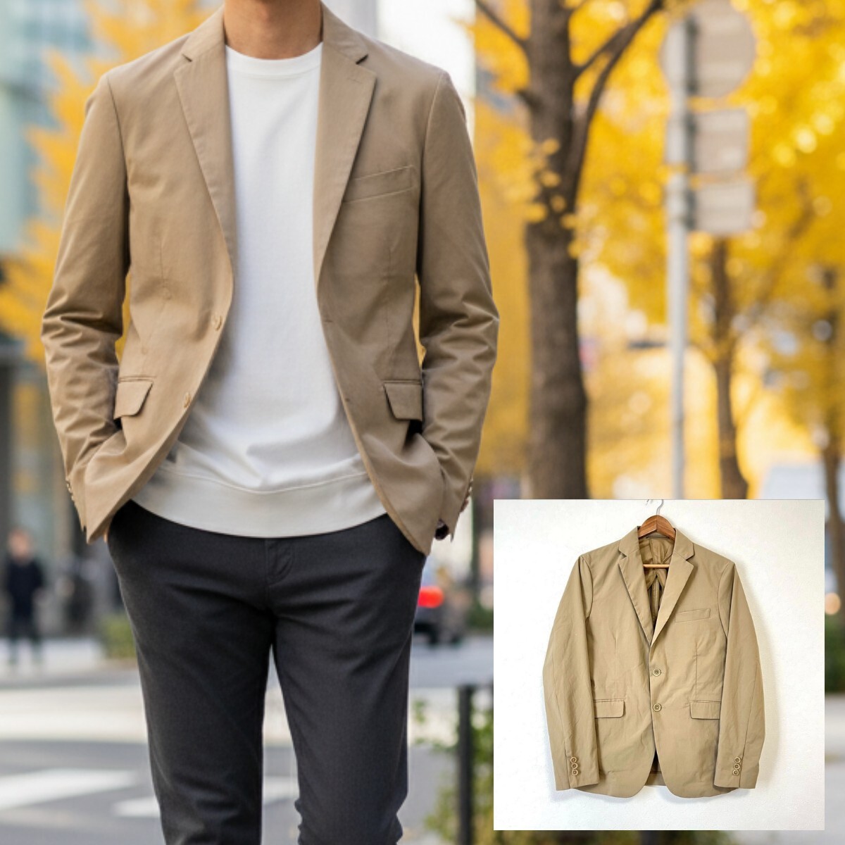 417EDIFICE のテーラードジャケットです。オンオフ問わず使え、軽い着心地でこれからの季節のアウターとしてもオススメ◎右袖に点ほどのシミがございますが、目立つダメージはなく全体的に綺麗です◎この機会にぜひ!