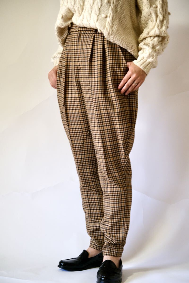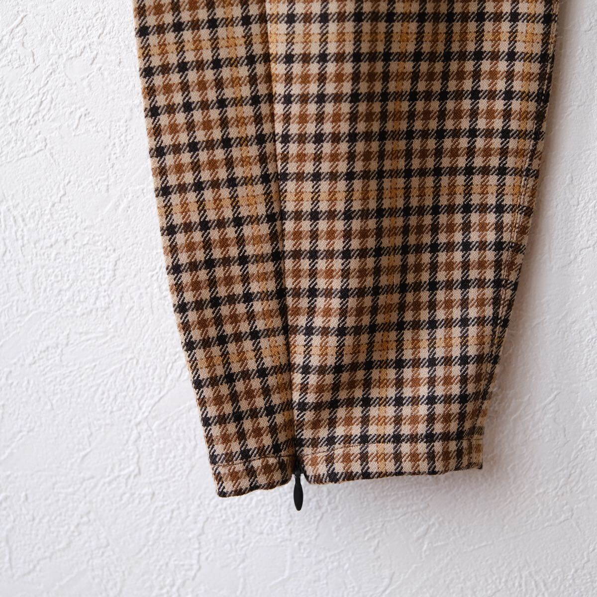 柔らかなソフトツイード地で仕立てられたテーラードパンツです。