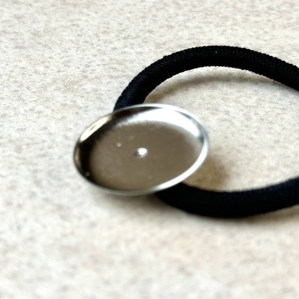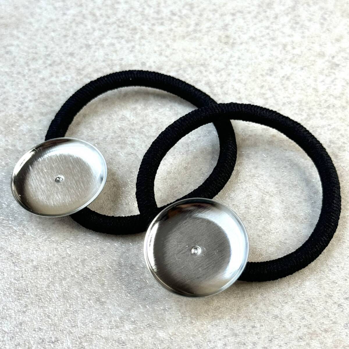 25mm 皿付きヘアゴム ブラック 黒 2個
