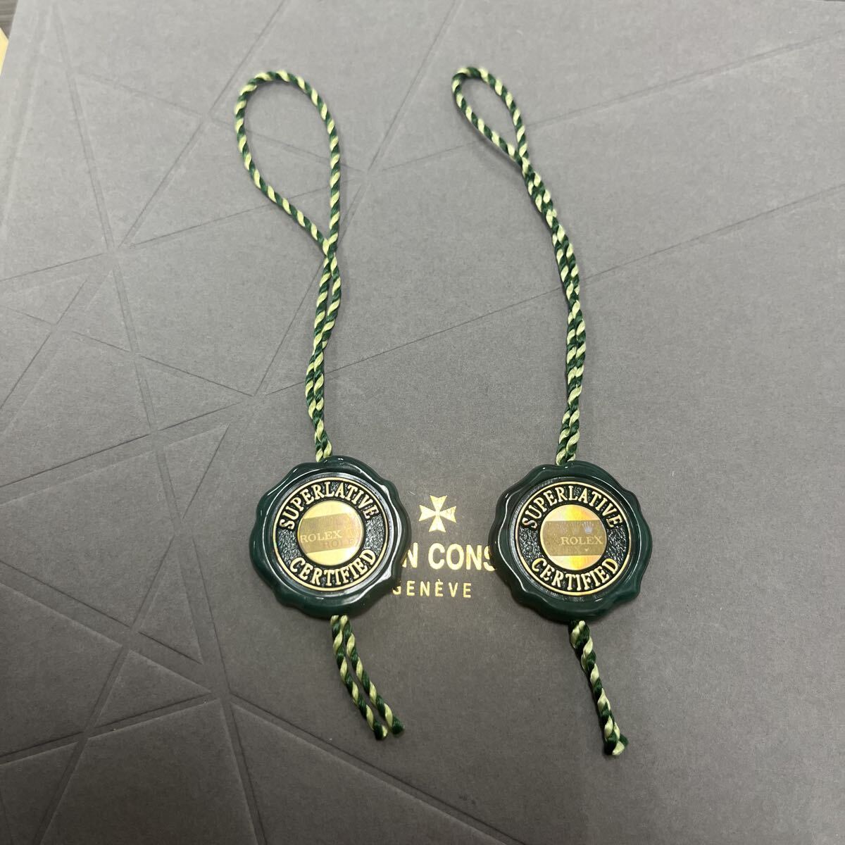ロレックスの腕時計購入時についてくるグリーンタグです。2024年、2025年に購入した腕時計の付属で二つとも同じデザインです。特に傷はございません。