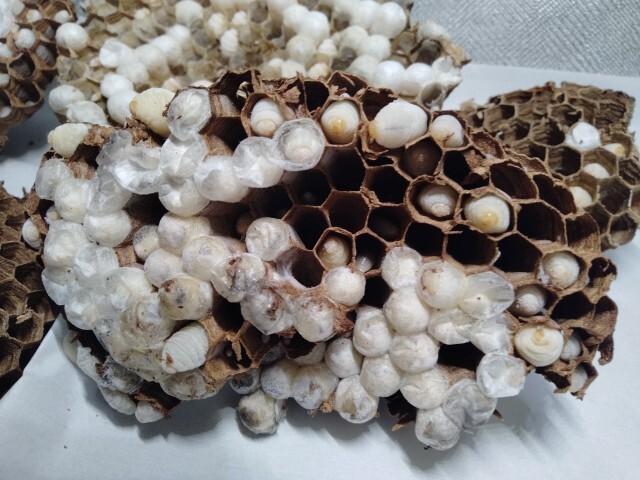 吸い込みでの生け捕り方式の駆除ですので 無薬 無煙です -20度保存です クール宅急便配送になります 北海道 離島は配送できないです コガタスズメバチは巣が小型でこのネーミングです キイロスズメバチより大きいです
