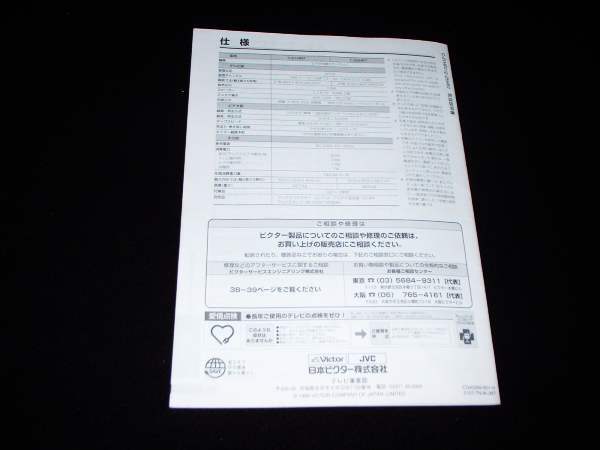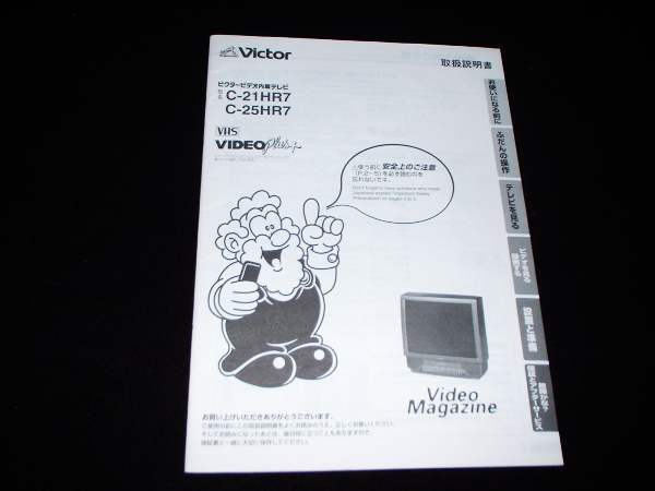 ★ビクタービデオ内蔵テレビ C-21HR7、C-25HR7の取扱説明書です。特に目に付く傷みや汚れは有りません。 |