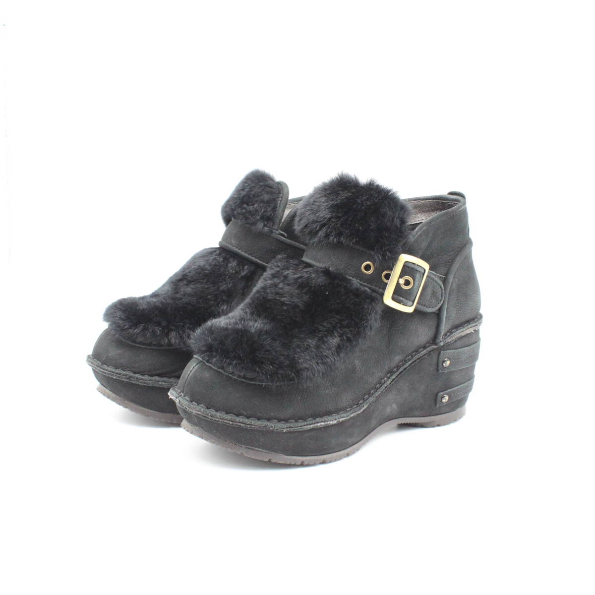 ヒナデイグリーン 本革ウエッジショートブーツ(S)超美品