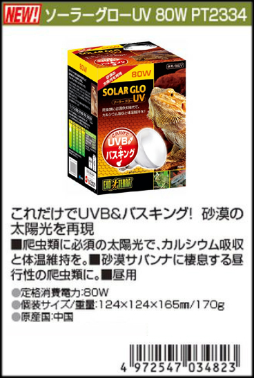 ★ ソーラーグローUV80W ジェックス エキゾテラ 爬虫類用バラストレスUVB水銀灯 消費税0円 新品価格 ★