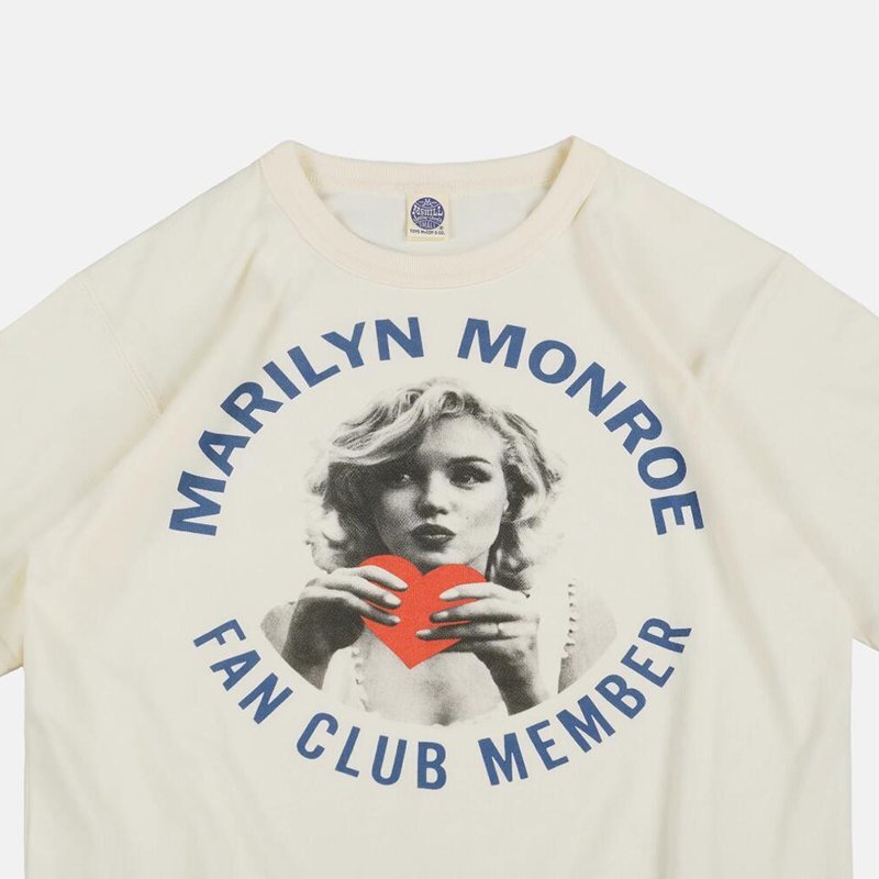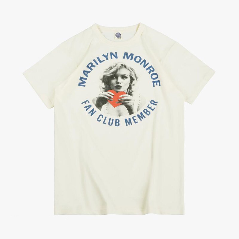 ◇マリリン・モンロー ファンクラブ”と題して、キュートな表情のモンローをフロントにプリントしたTシャツ。