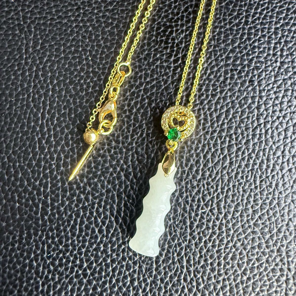 本翡翠と竹節モチーフの組み合わせは、「人生の飛躍」「家運隆盛」を願う強力なお守りとなります。