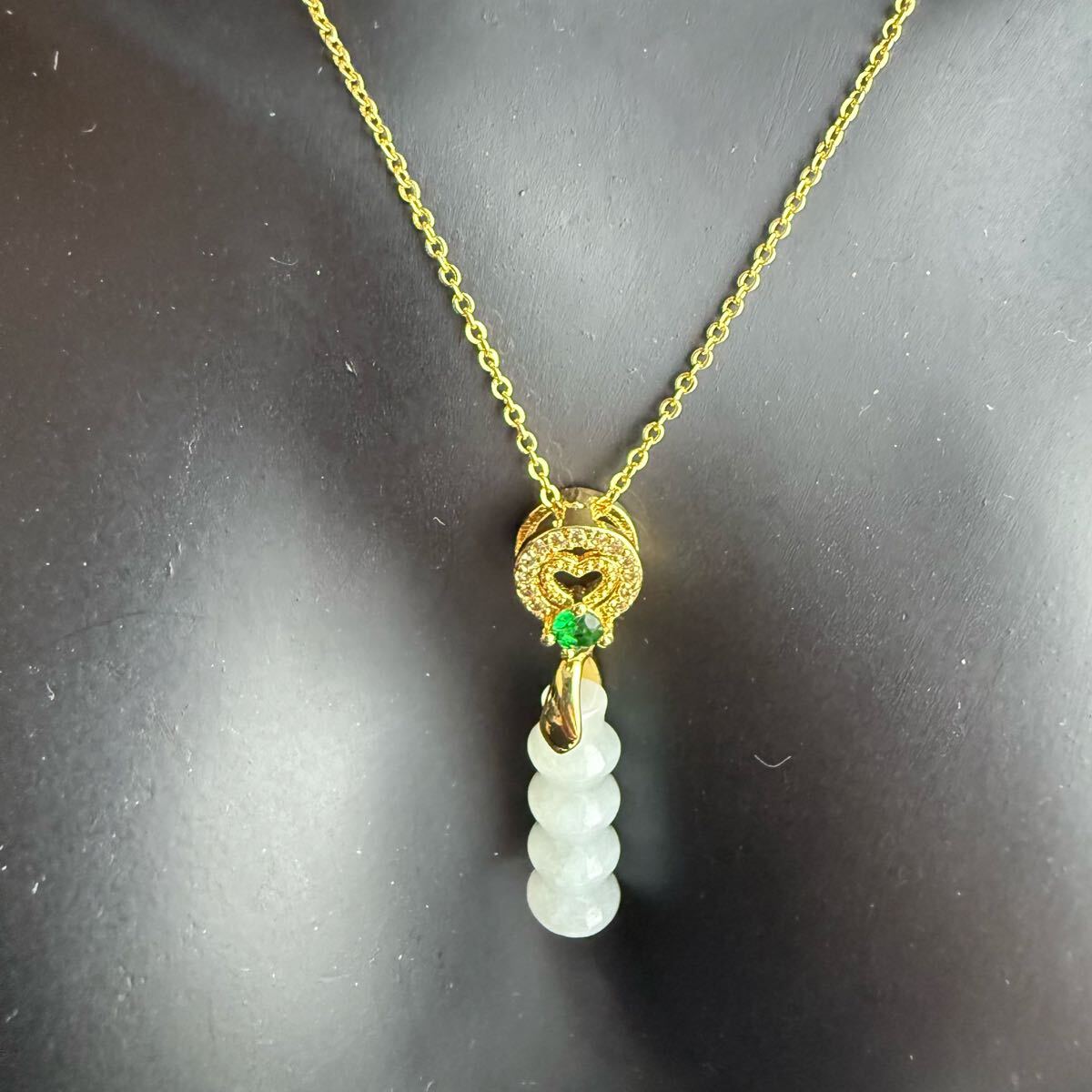 素材:本翡翠(ジェダイト/緑翡翠)、金色メタル装飾、ジルコン装飾