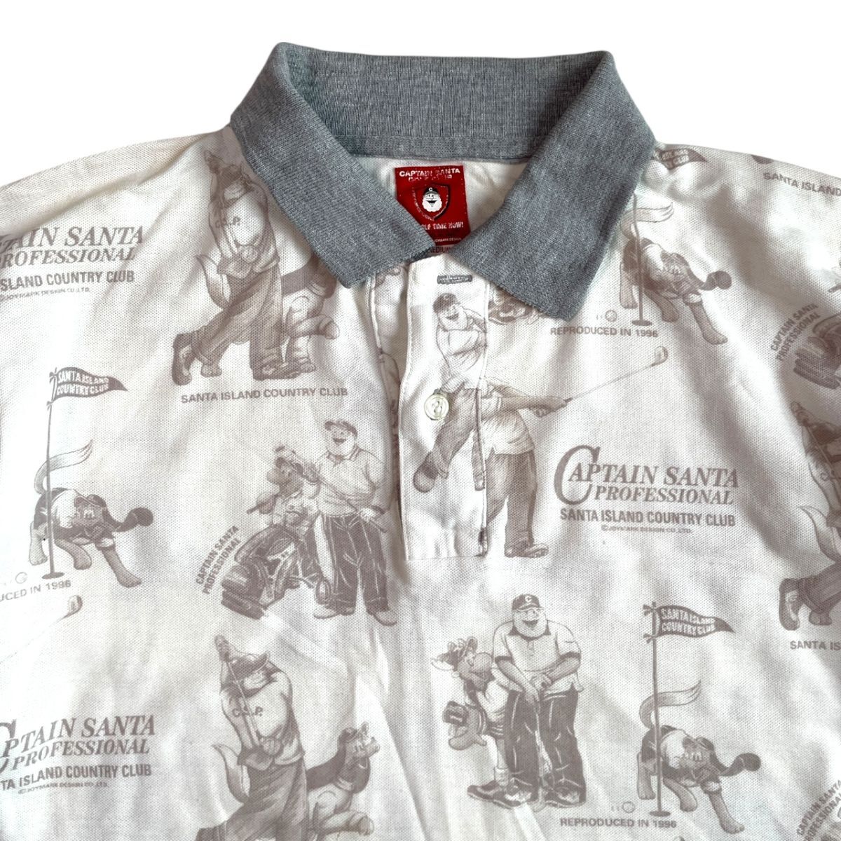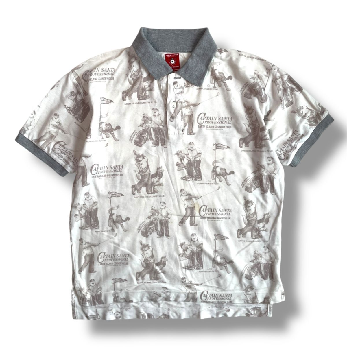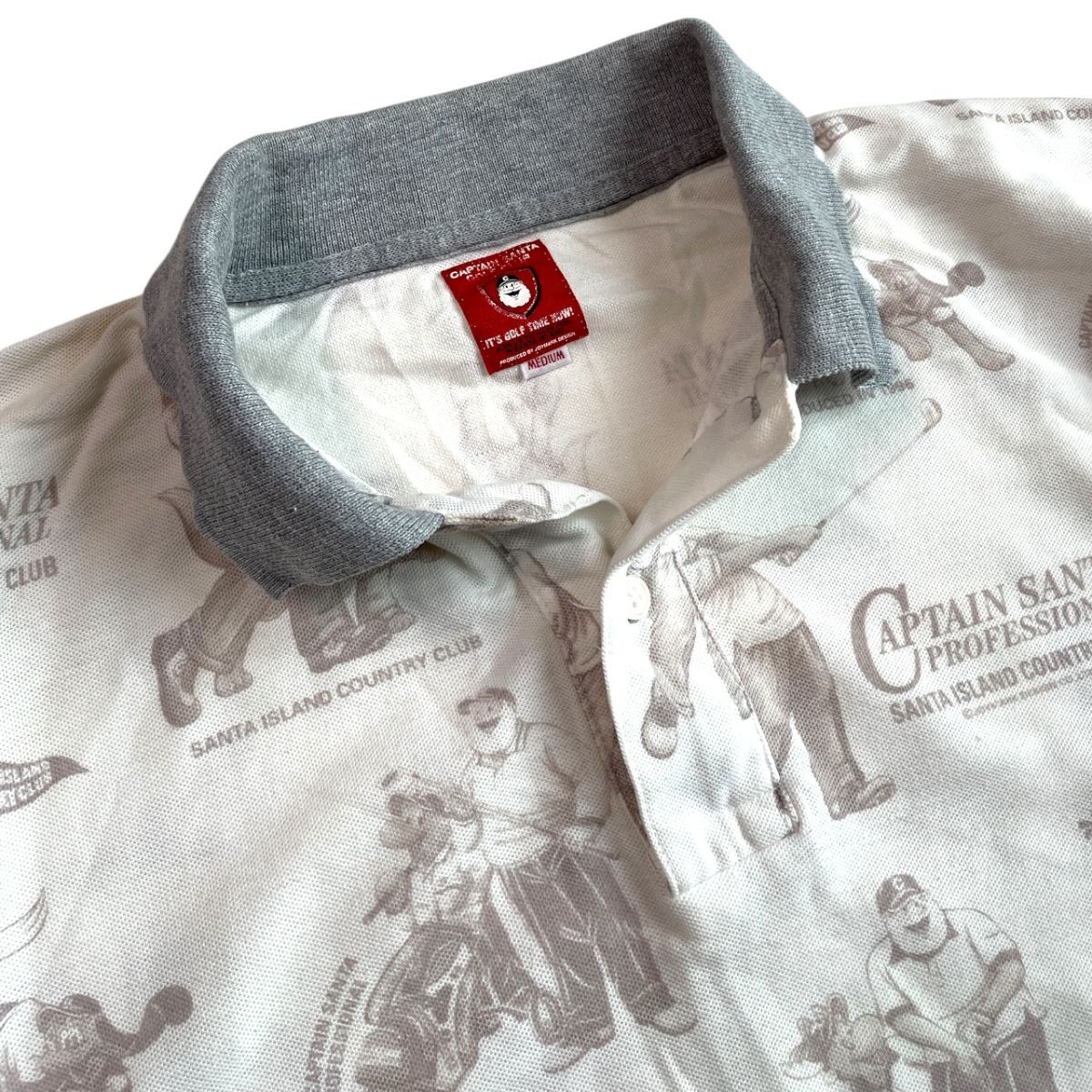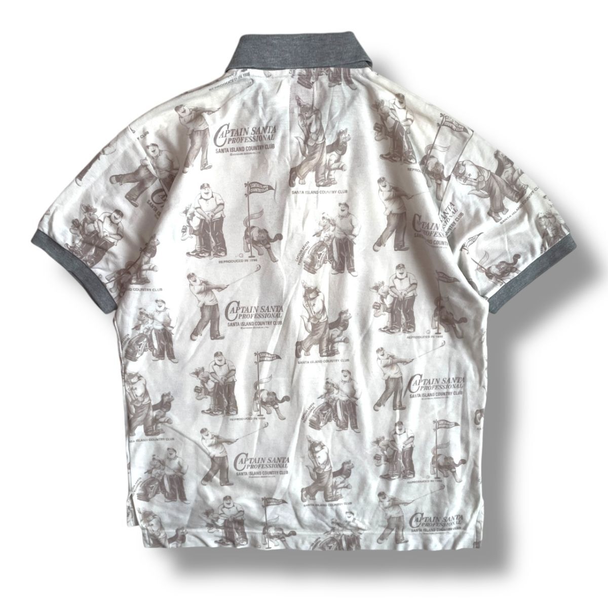 国内正規★ Captain Santa キャプテンサンタ 半袖 総柄 デザイン ポロシャツ Mサイズ グレー系 トップス POLO ゴルフ デザイン GOLF