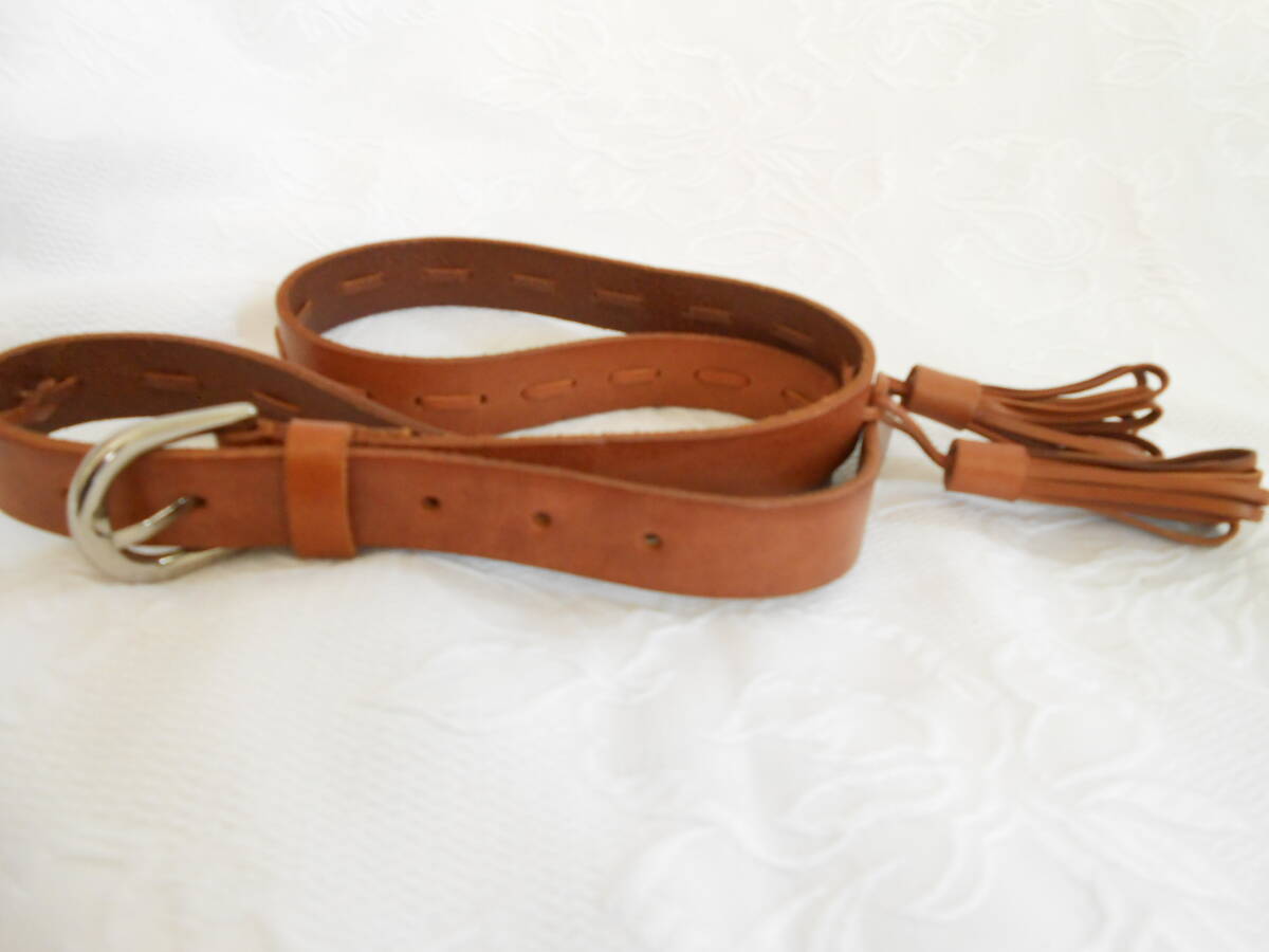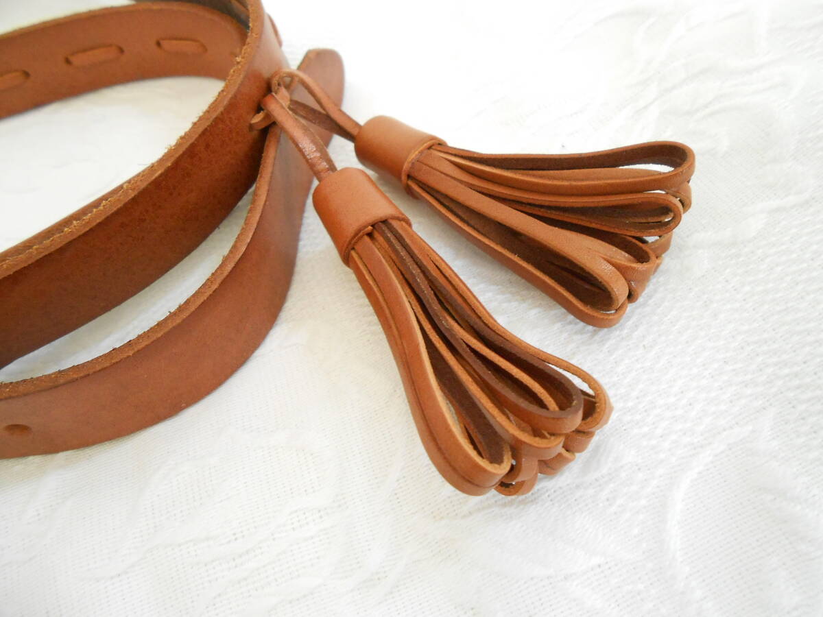 レディース 革  タッセル付きベルト  2x95㎝  茶