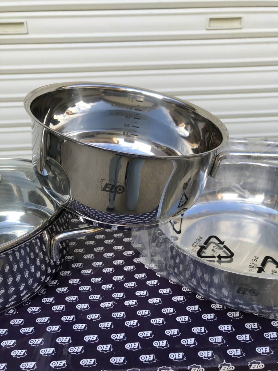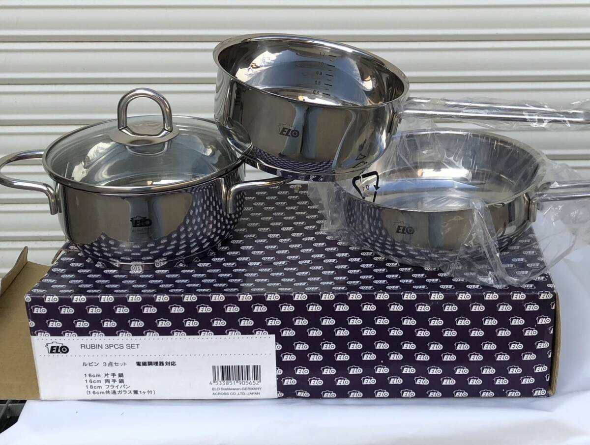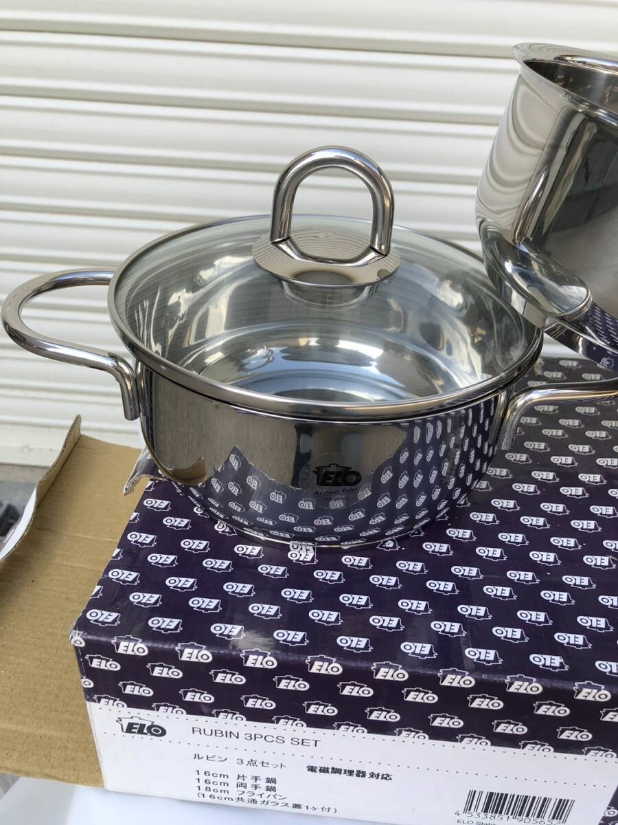 ELO RUBIN ルビン3セット ステンレス 16cm片手鍋/16cm両手鍋/18cmフライパン(16cm共通ガラス蓋1個付き)
