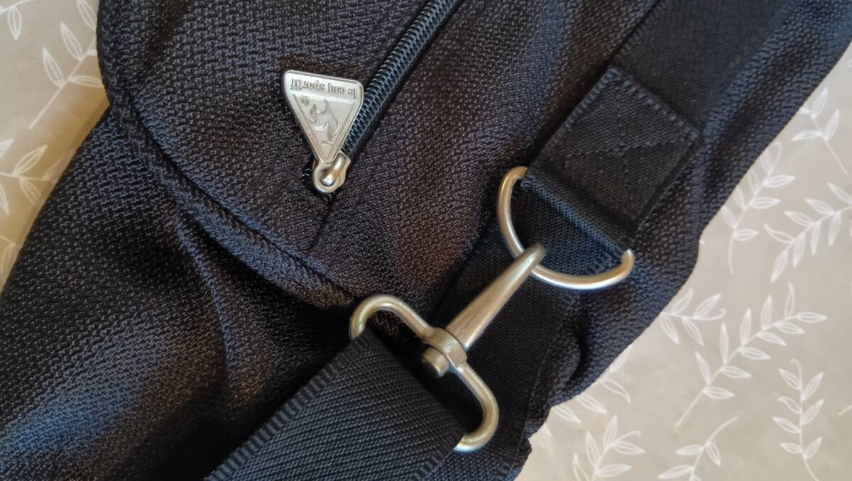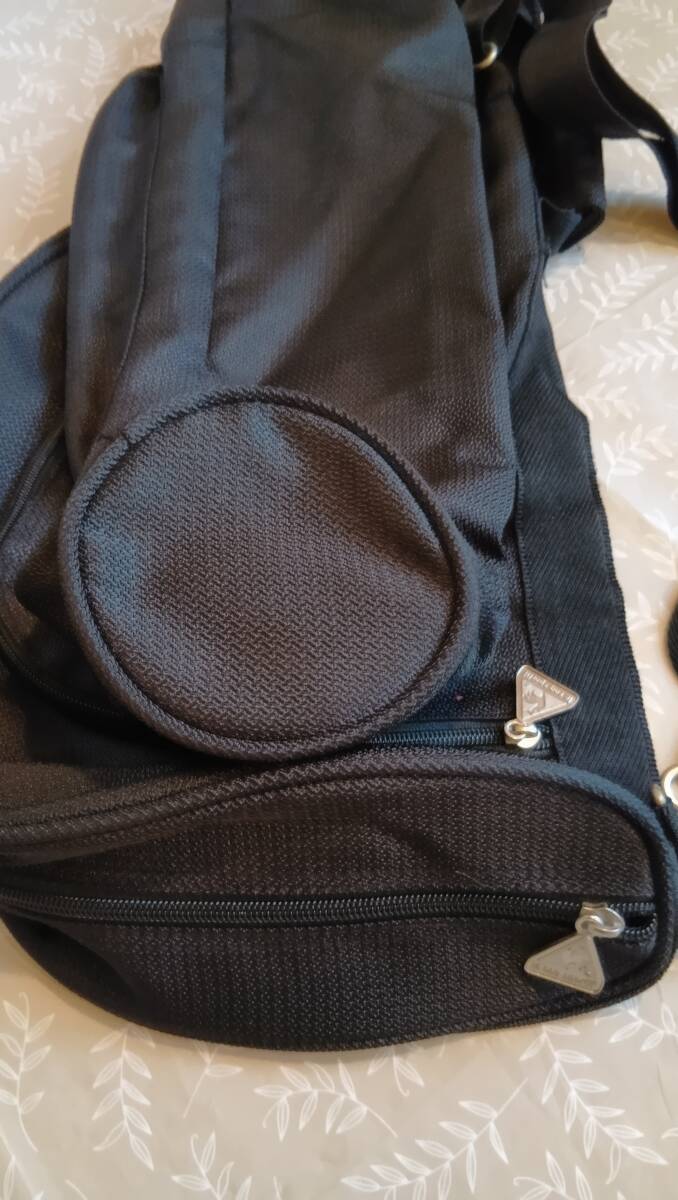 美品! ルコック ゴルフ クラブケース 細かいメッシュ風光沢ブラック 全長約126㎝ 反射でキラキラ 2ポケット約32㎝x18㎝、約30㎝x13㎝