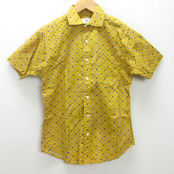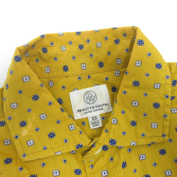 G■ユナイテッドアローズ/UNITED ARROWS B&Y 半袖シャツ/ダイス柄 1216-149-1260【XS】黄/men's/122【中古】■