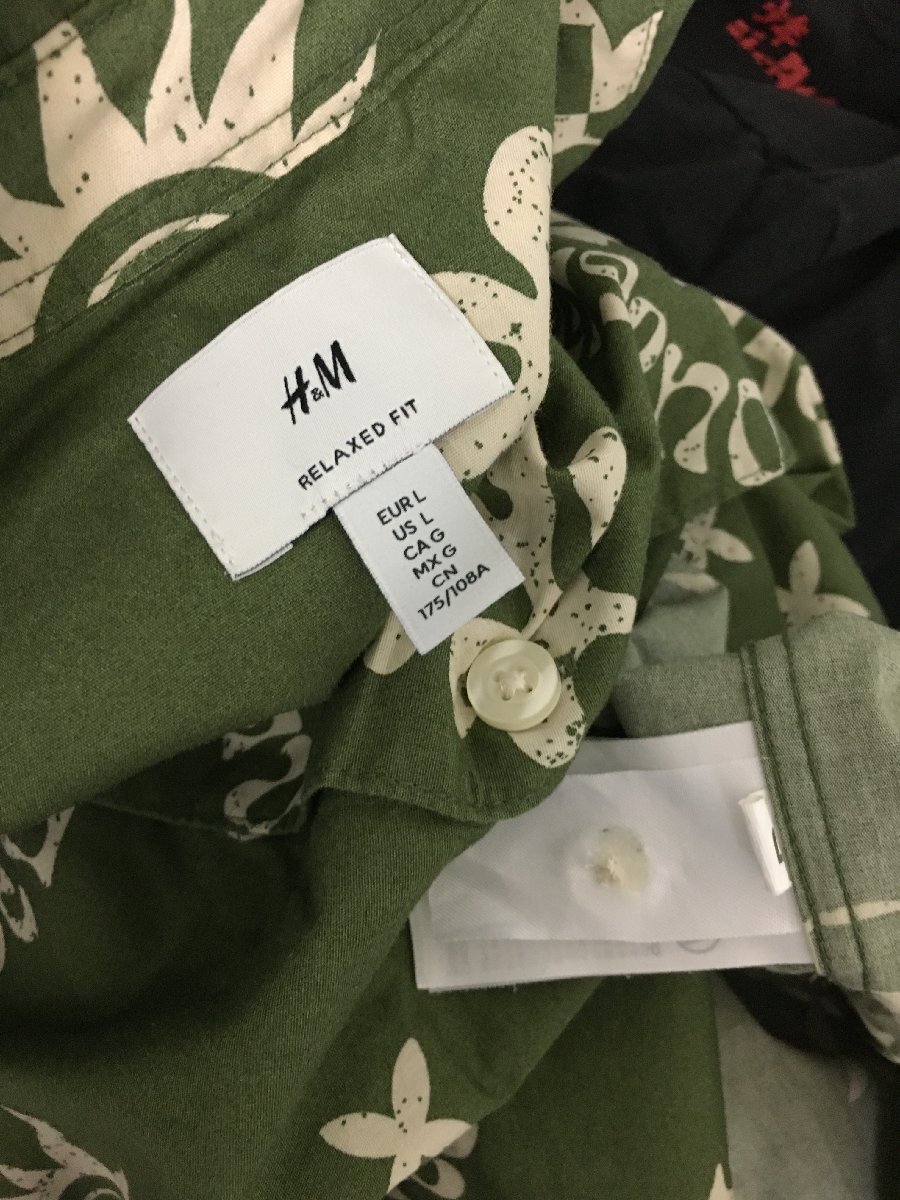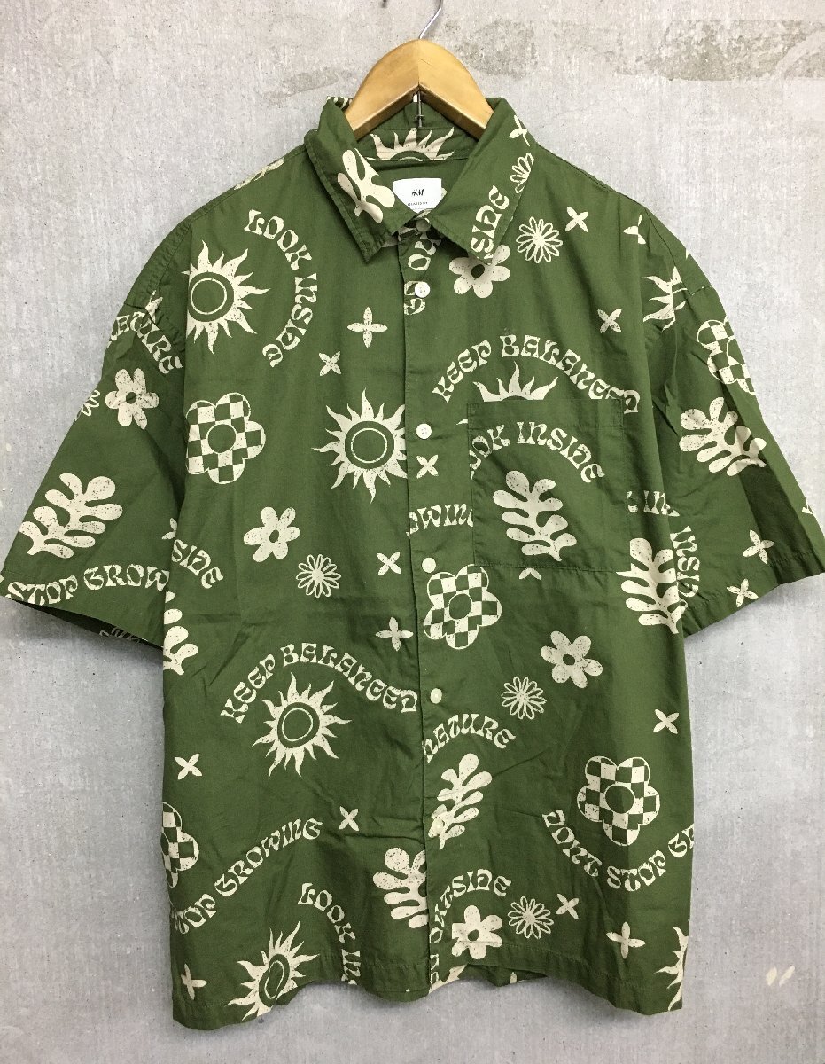 ◆ ◆H&M RELAXED FIT エイチアンドエム 総柄 半袖 アロハシャツ グリーン サイズUS/L 美