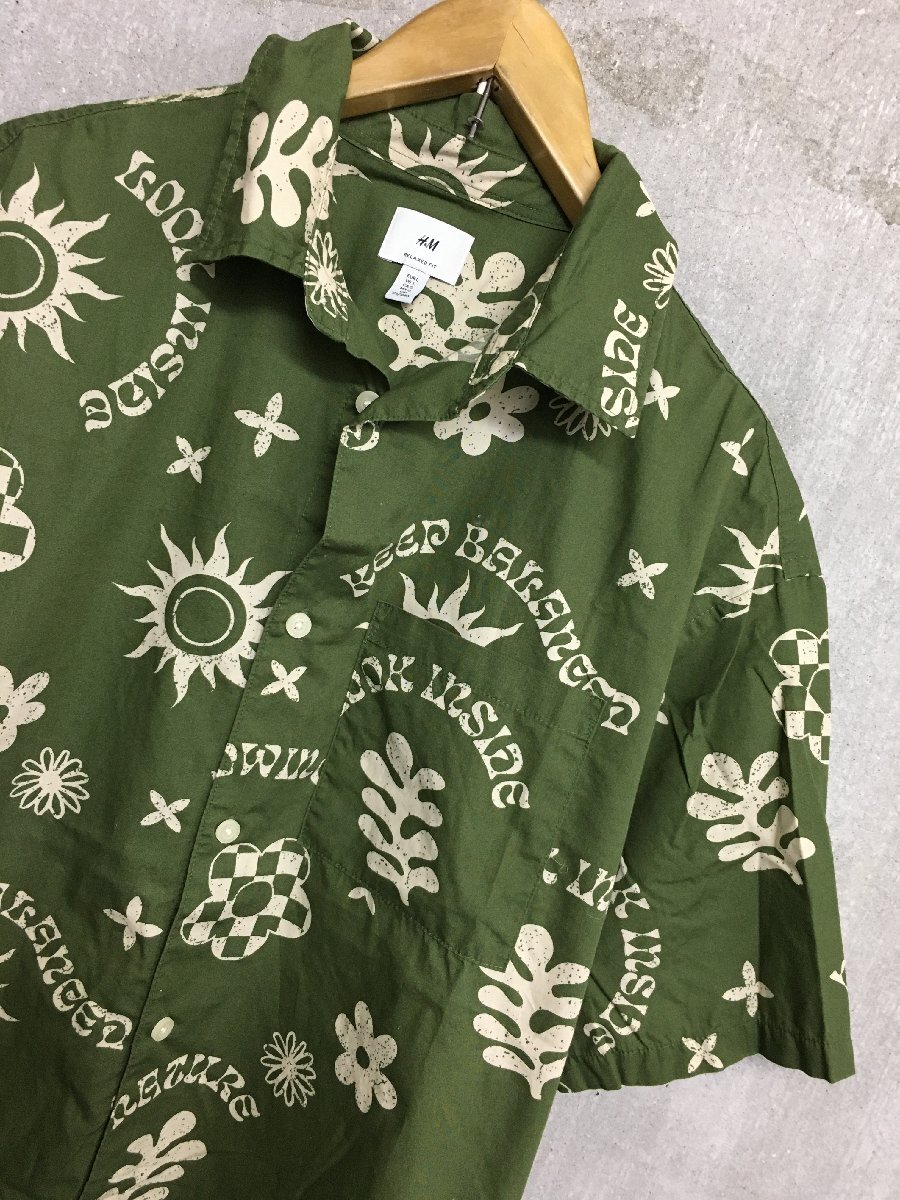 ◆H&M RELAXED FIT エイチアンドエム 総柄 半袖 アロハシャツ グリーン サイズUS/L 美