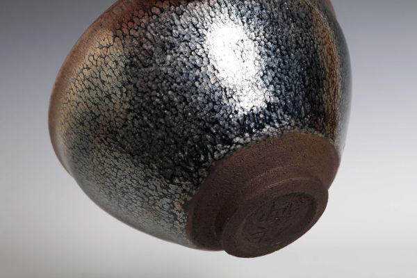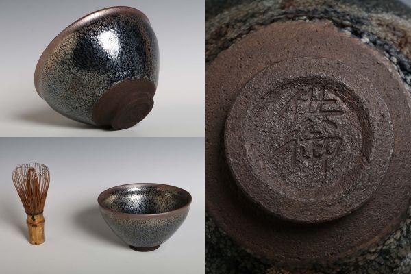 N26155 中国陶器 在銘 油滴天目碗 茶碗 茶道具 検天目釉 油滴天目 中国 古玩 唐物