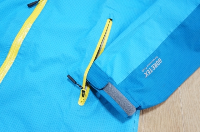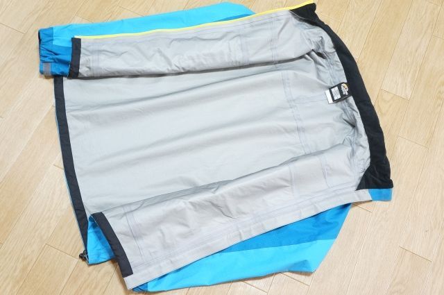 色使いの良い ブルー切り返しデザイン、雨風に強い ゴアテック使用のジャケット、