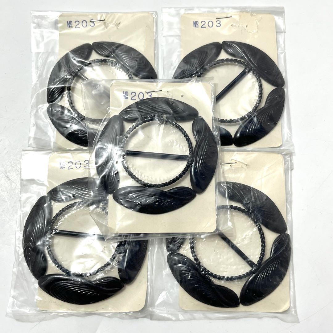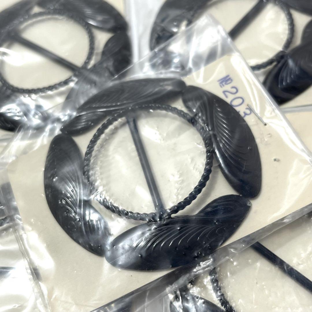 ば21【希少まとめ売り】アンティーク ブラック バックル 5個セット 金属パーツ ◇バッグ修理・ベルトリメイク・衣装製作・手芸資材 丸型葉っぱモチーフ レトロ