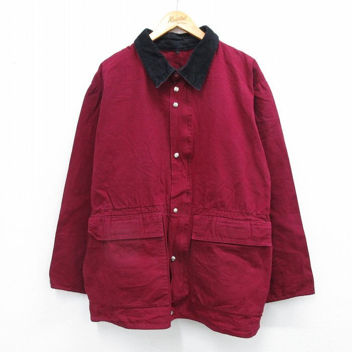 【商品名】 XL★古着 長袖 ジャケット メンズ 大きいサイズ 襟コーデュロイ エンジ