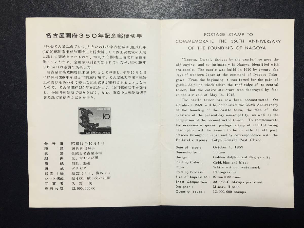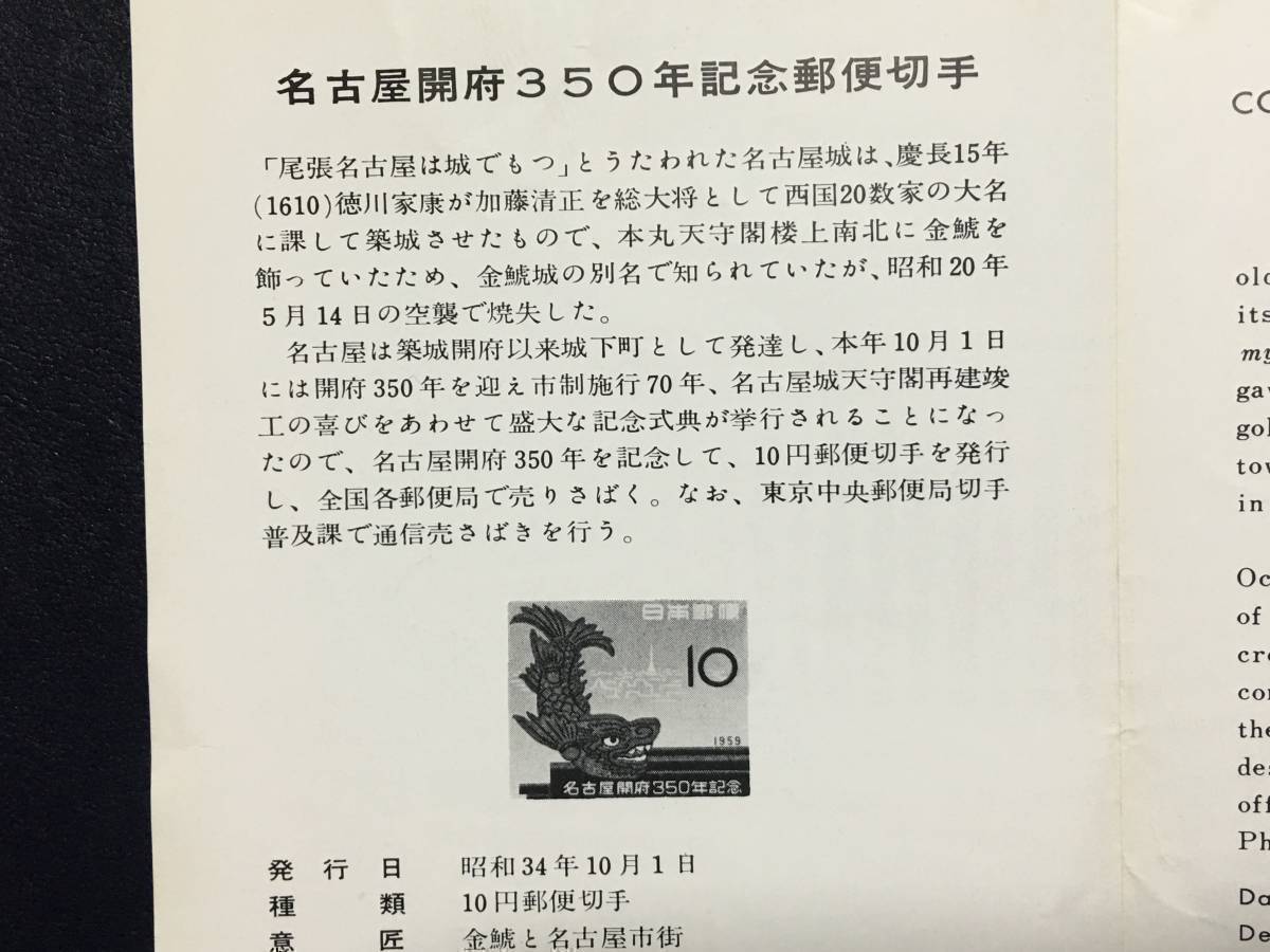 7766 レア 郵政省 58番 名古屋開府350年 記念切手 解説書 建物切手 風景切手 金鯱切手 即決切手 美術品 FDC 初日記念カバー 未使用 切手無