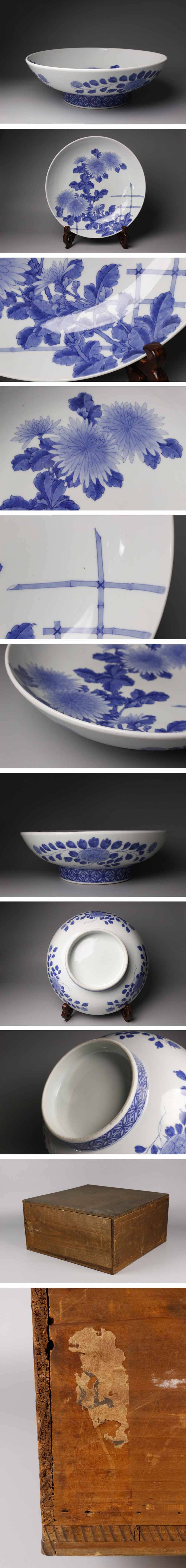 多彩な色彩を感じさせる奥行のある濃淡で美しく仕上げられた藍鍋島の大皿です。