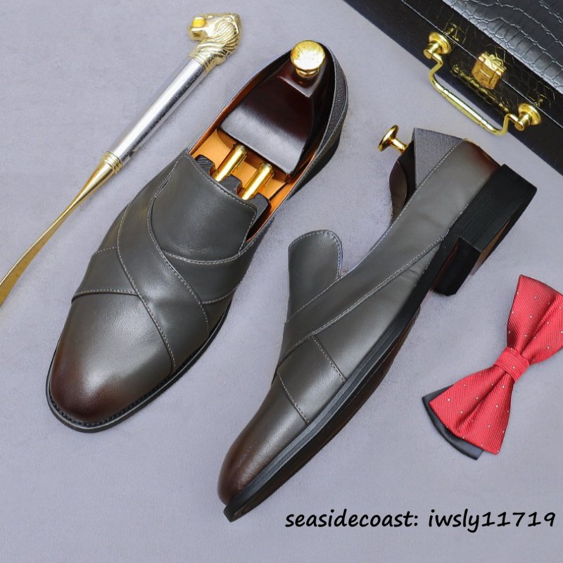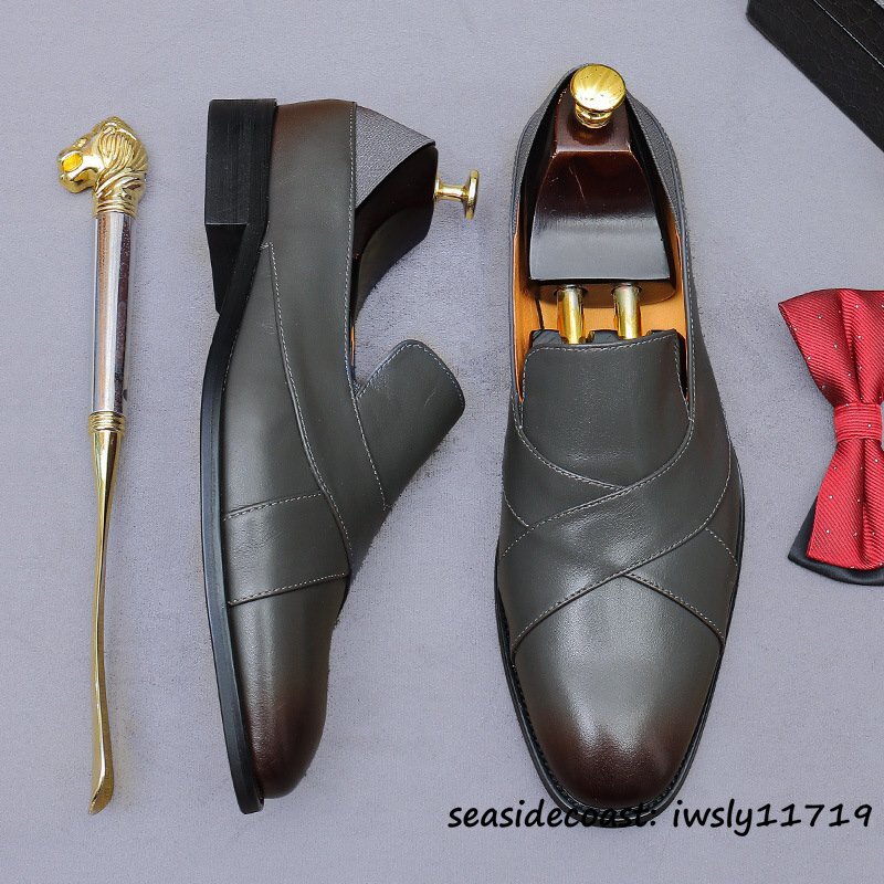 定価9万超■最高級 超希少 レザーシューズ 本革 ビジネスシューズ 職人手塗り上げ 彫り 牛革 紳士靴 革靴 フォーマル 新品 グレー 28.0cm