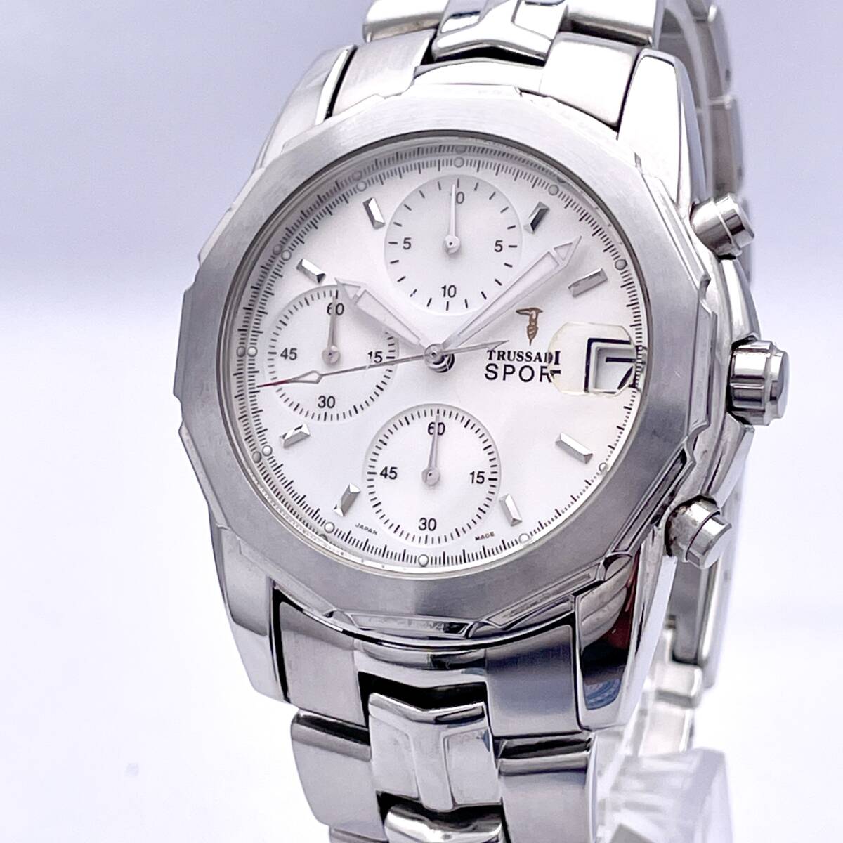 TRUSSARDI トラサルディ TS-2030 腕時計 メンズ ウォッチ クォーツ quartz クロノグラフ デイト 銀 シルバー P4625