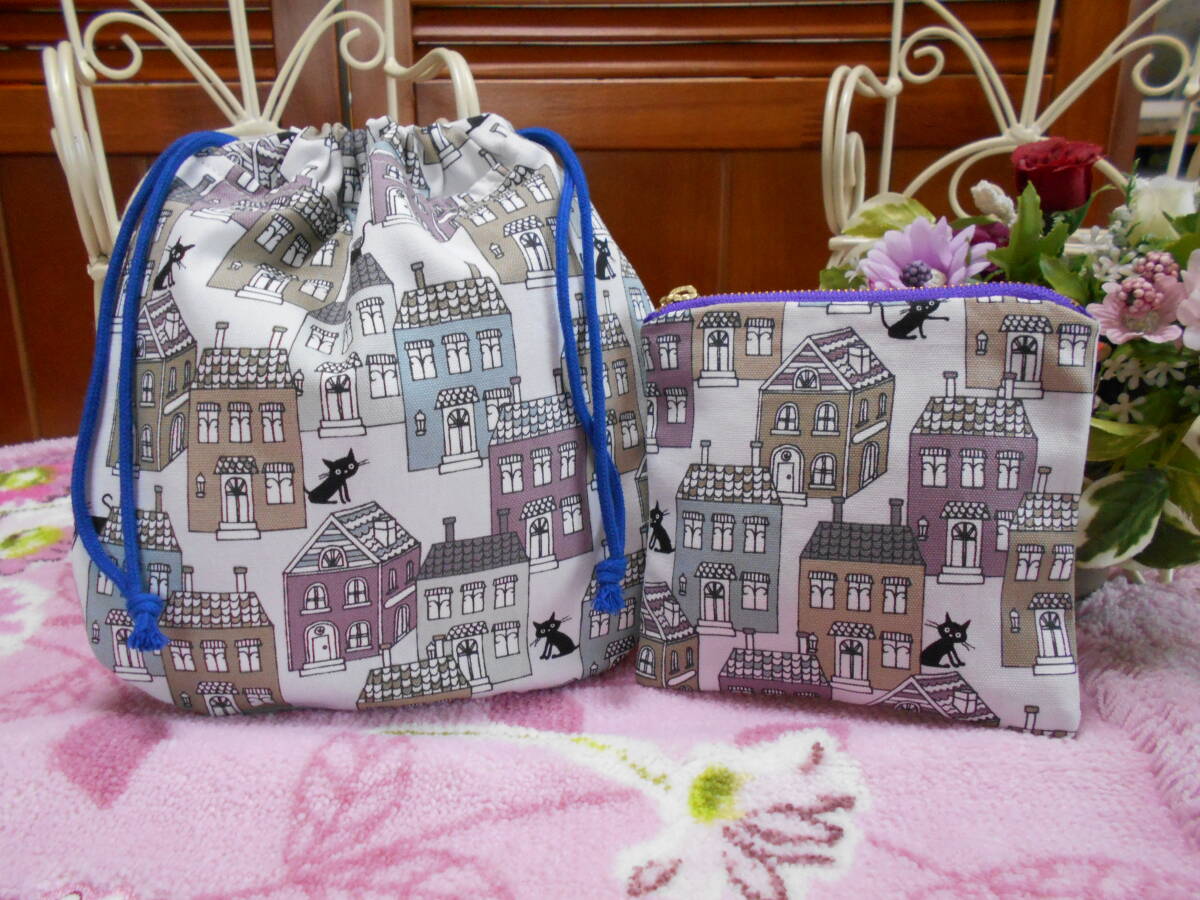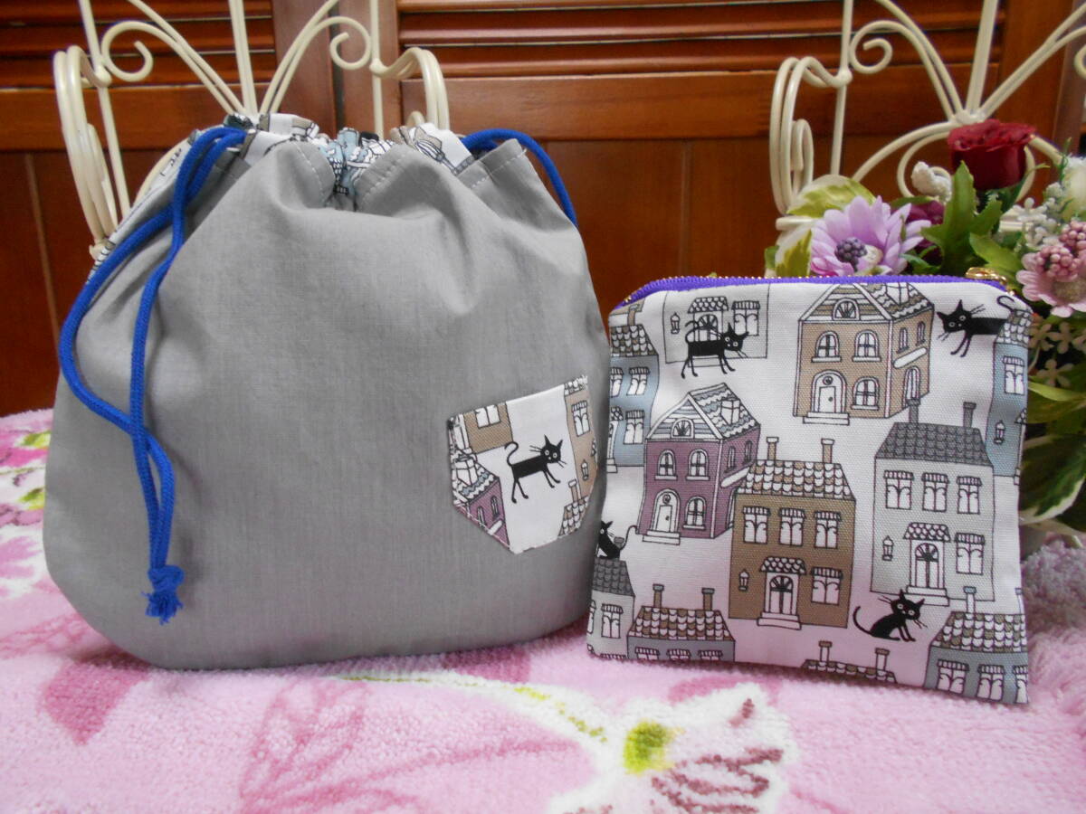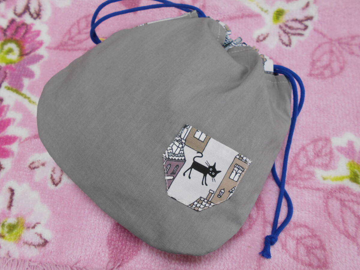 お家猫・巾着・飾りポケット付き&ポーチ・小物入れ・ハンドメイド