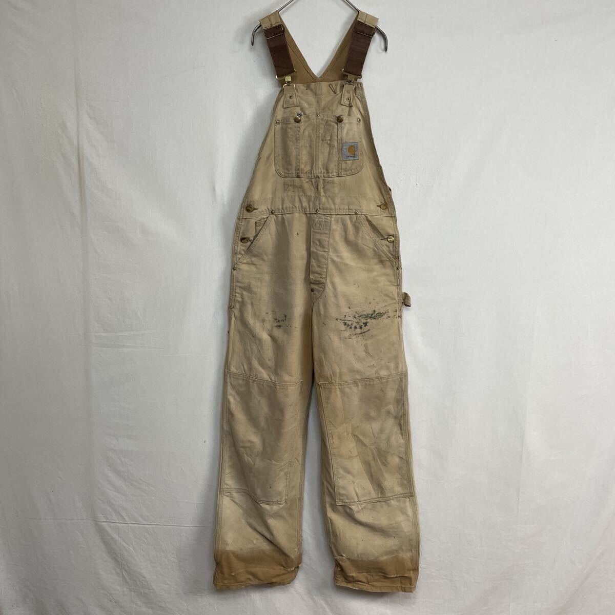 アメリカ製 カーハート ダブルニー ダックオーバーオール 古着 32×30 ブラウン WORKWEAR