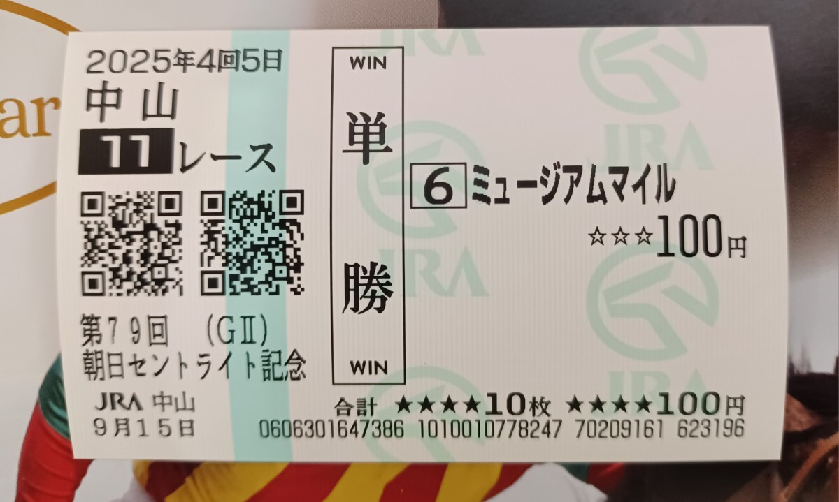 2025年 朝日杯セントライト記念 ミュージアムマイル 現地購入単勝馬券