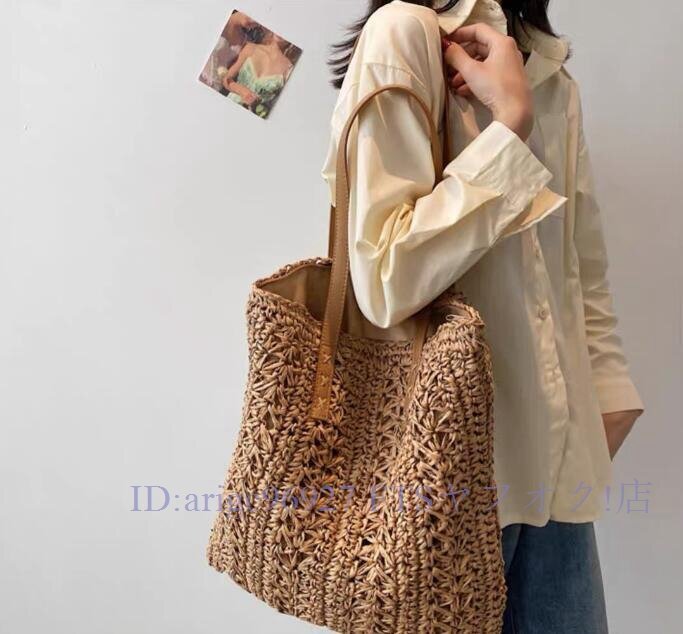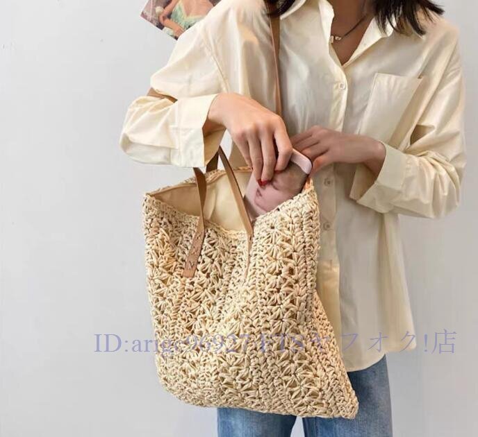 ★新品大容量かごバッグ レディース トートバッグ 手提げ ストローバッグ ハンドバッグ