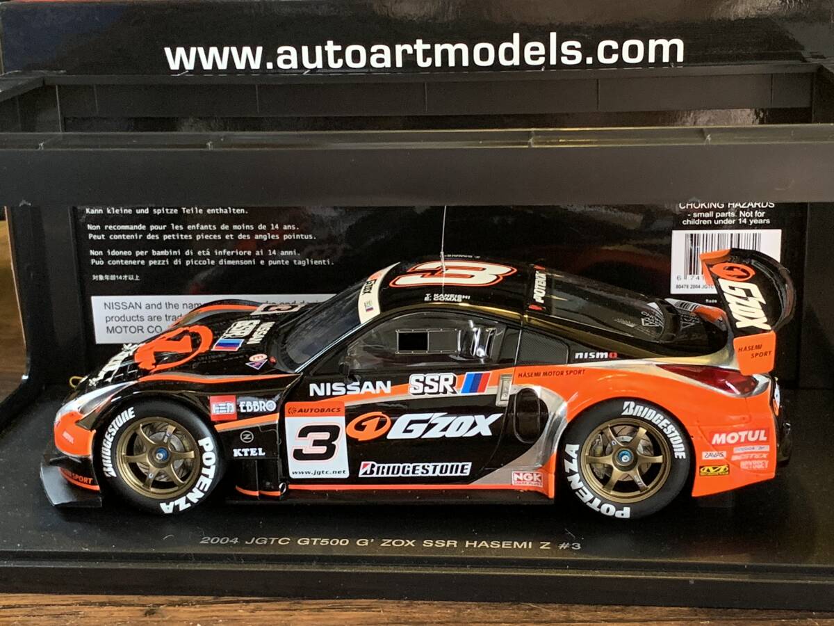 オートアート製。絶版貴重モデル 1/18 日産 JGTC 2004 #3 G'ZOX SSR HASEMI Zです。廃棄されました玩具店の新品長期在庫品でしたので大変良い状態で、オートアート製ですので外観は勿論のことドライバーズバケットシート&シートベルトにはNISMOロゴまで細かく作られています(画像参照)。お譲り致しますのは本体のみで付属するものはございません。NCNR厳守、商品到着後の速やかな受け取り連絡をお約束下さい。尚、勝手を申しますが落札後24時間以内のご連絡、簡単決済は2日以内でお願い致します。御無理を申しますが宜しくお願い致します。 ※※※商品の受け取り連絡につきましては最後までスムーズなお取引を希望致しますので各営業所到着日(配達日)より営業所保管を含みまして24時間以内でお願い致します。 24時間経過しても商品の受取連絡を頂けない場合はいかなる理由がございましても評価変更をさせて頂きますので留守の多い方の御入札はお控え下さい)。以上、御了承の上、御入札をお願い致します。※※※