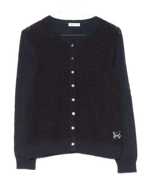 「HARRISS GRACE」 レースニットカーディガン 36 ネイビー レディース