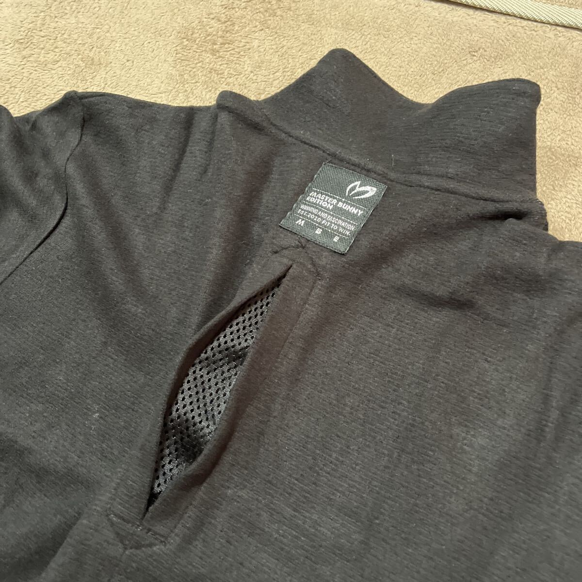 マスターバニーbyパーリーゲイツの表面が少し起毛した暖かい素材のストレッチハーフジップシャツです。