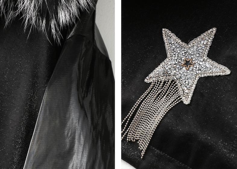 今年のブレイク予感の一品 独特の模様と光沢感をが魅力です。 軍用パーカーが元となったミリタリーなデザインが魅力的なモッズコート。 カジュアルスタイルにぴったりで、かっこいい着こなしができるコートです。 フードの周りにはラクーンファーをトリミングしています。ラクーンファーはボタンで取り外しができるので、アレンジも自在。 ポリエステルと綿の混紡素材を使用し、程よいハリできれいなシルエットを保ちます。 コートの内側には美しい毛艶を施したラビットファーを使用しています。 美しい毛艶、滑らかな肌触り ラビットファーが全身を包み、とても暖かな着心地です。(ラビットは、ボリューム感があり、 保温力に優れ、とても柔らかな肌触りの毛皮。) フードにトリミングされたたっぷりのラクーンファーで高級感もあるデザインなので、 カジュアルすぎず、大人っぽい着こなしができます。 ライナーは付け外し可能なので、ロングシーズンお使いいただけます。 快適な着やすさで様々なシーンで大活躍するアイテムになります ! ※サイズ:L 着丈86cm、胸周り116cm、ゆき丈70cm(ゆき丈→襟付け根に当たる部分から、肩を通って袖口までの長さ) 素材表地:ポリエステル100%、綿35% 裏地:ポリエステル100% 毛皮:ラクーンファー ライナー:ラビットファー 詰物:綿100% 裏地あり 留め具・ファスナー ・スナップボタン×4 ポケット左右1ケ所づつ 備考・ファーライナーはフード裏地と身頃部分のみです。 ・袖部分は中綿入りの生地になっています。 | |||