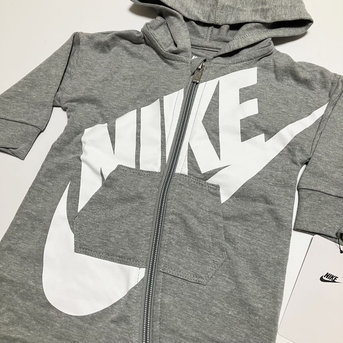 ・商品コメント:BIGなロゴやスウッシュプリントがインパクトを放つ、フード付きロンパース。素材には柔らかな綿混紡の優しい肌触りの生地を使用し、動きやすく着心地も快適です。オムツ替えやお着替えのしやすい、ファスナーの前開きタイプなのも嬉しいポイント。