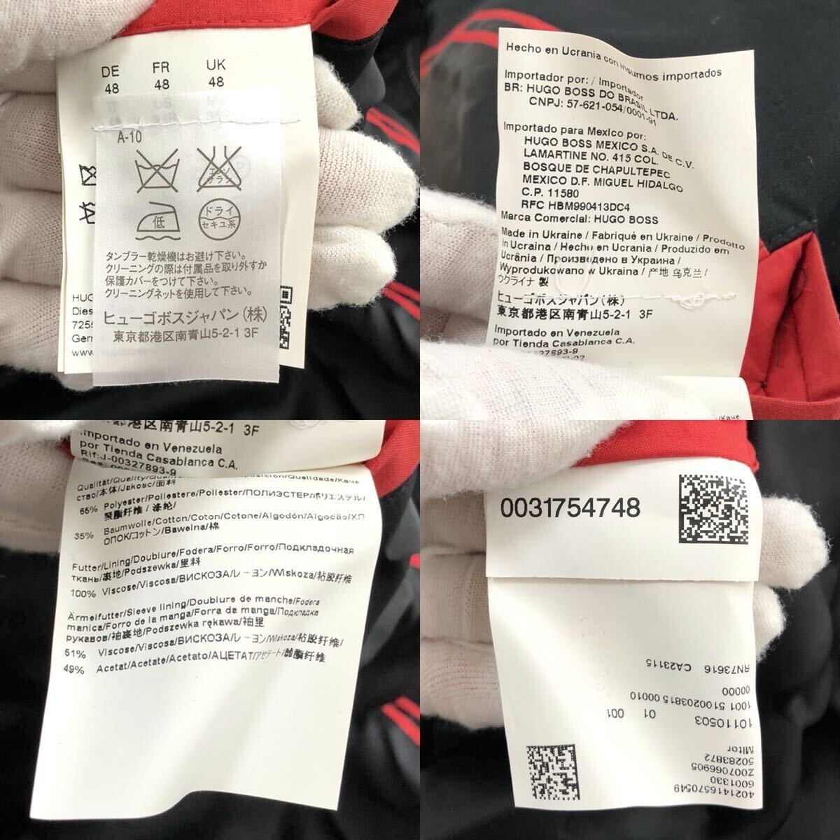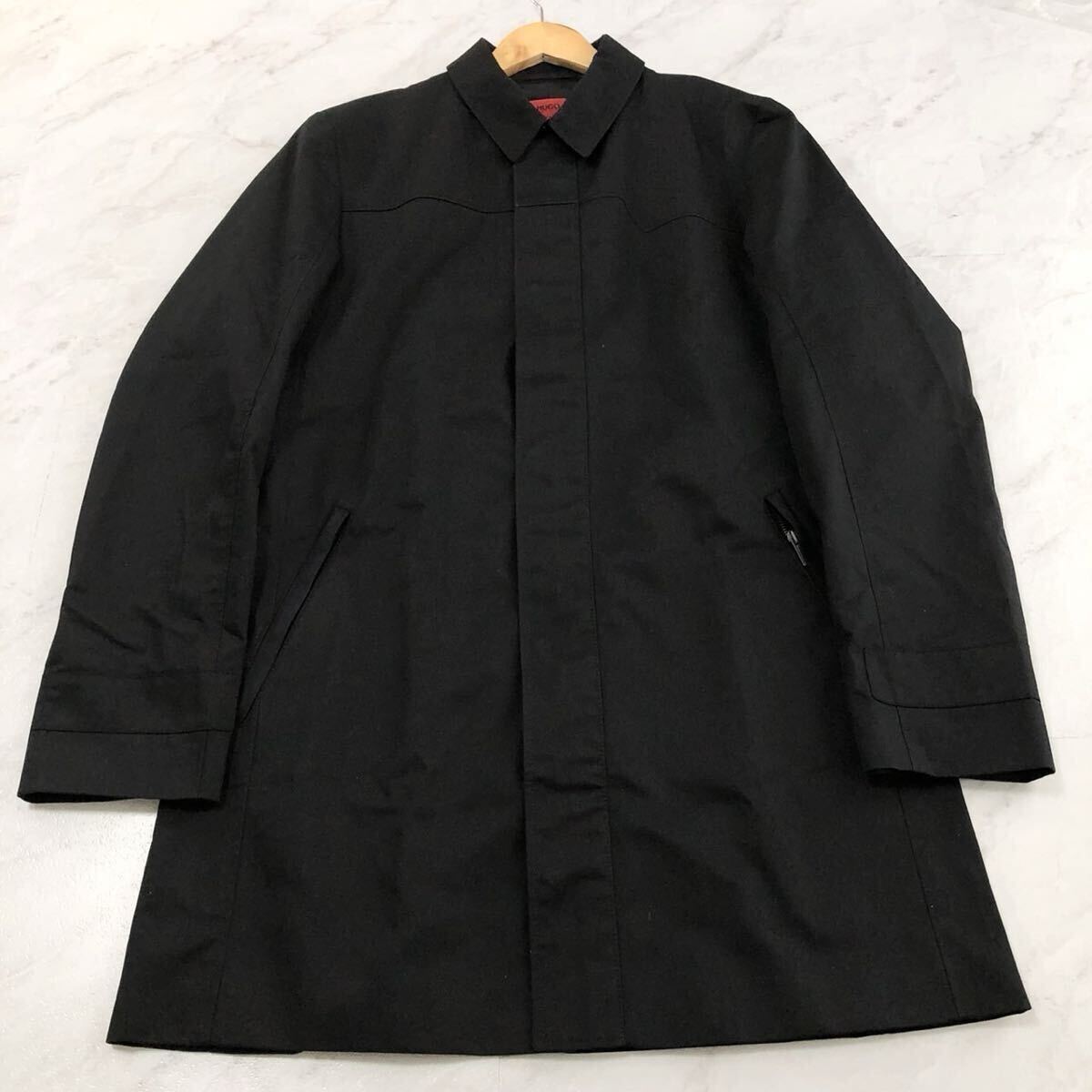 極美品/L相当●HUGO BOSS ヒューゴボス 赤タグ ステンカラーコート ロング アウター 比翼仕立て ジップアップ ブラック 黒 メンズ 48