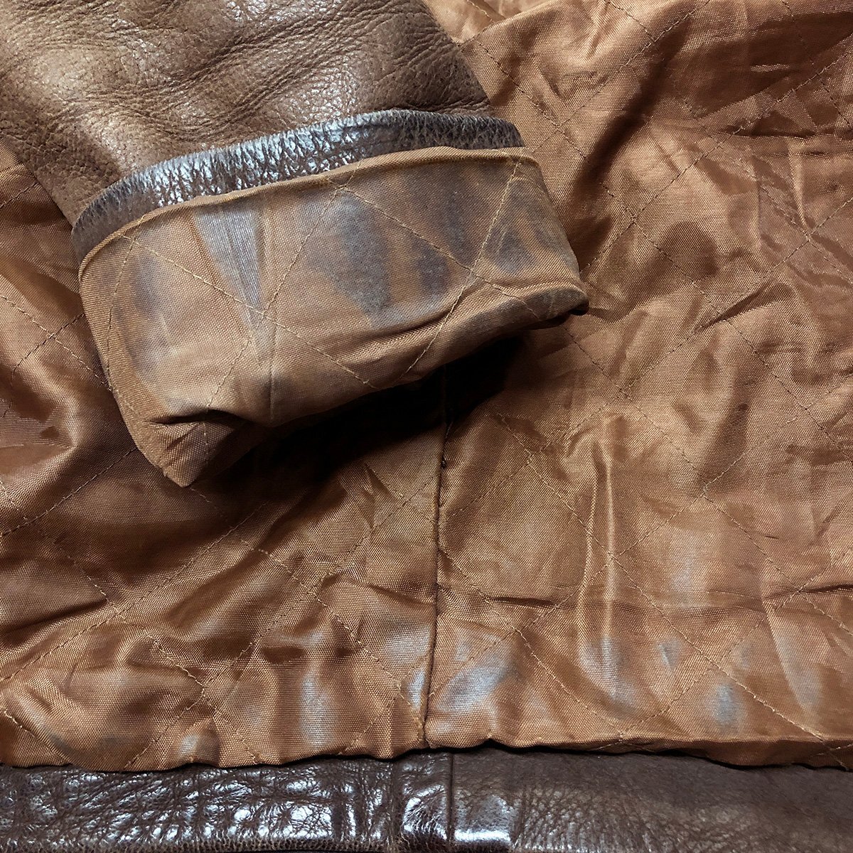 中古品です。使用感があります。襟や腕など全体的に経年による擦れや変色、裏地首周りや裾や袖先などに汚れ、裏地脇やポケット内にリペア跡があります。