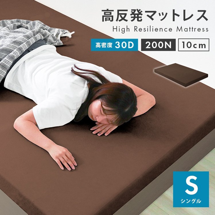 高密度30D!こだわりの硬さ200N! 厚みたっぷり10cm! 適度な硬さで身体をしっかり支える、高反発マットレスです。 柔らかいマットレスとは違い、身体の沈み込みを軽減した腰に優しい寝心地です。 高反発マットレスのウレタンフォームは弾性が高く、適度な硬さで身体を支えるので、底つき感もなくへたりにくいマットレスです。 寝返りが多い方や仰向けに寝ることが多い方におススメです。 取り外しやすいL字ファスナー付き洗えるカバーが付属しています! 【商品仕様】 カラー:ブラウン サイズ(約):幅97cm×長さ195cm×厚み10cm(シングルサイズ) 梱包サイズ(約):(約)53.3×36×36.5cm 重量(約):(約)7kg 素材:高反発ウレタン(密度30D(30kg/m3)) 、パイル生地 他 硬さ:200ニュートン ※耐熱仕様ではございませんので、電気毛布との併用はおやめください。 (マットレス シングル セミダブル ダブル 高反発 低反発 高反発マットレス 低反発マットレス 4cm 8cm 10cm シングル 高反発マット 低反発マット マット ベットマット ベッド 敷き布団 洗える カバー 寝具 人気 おすすめ ) |