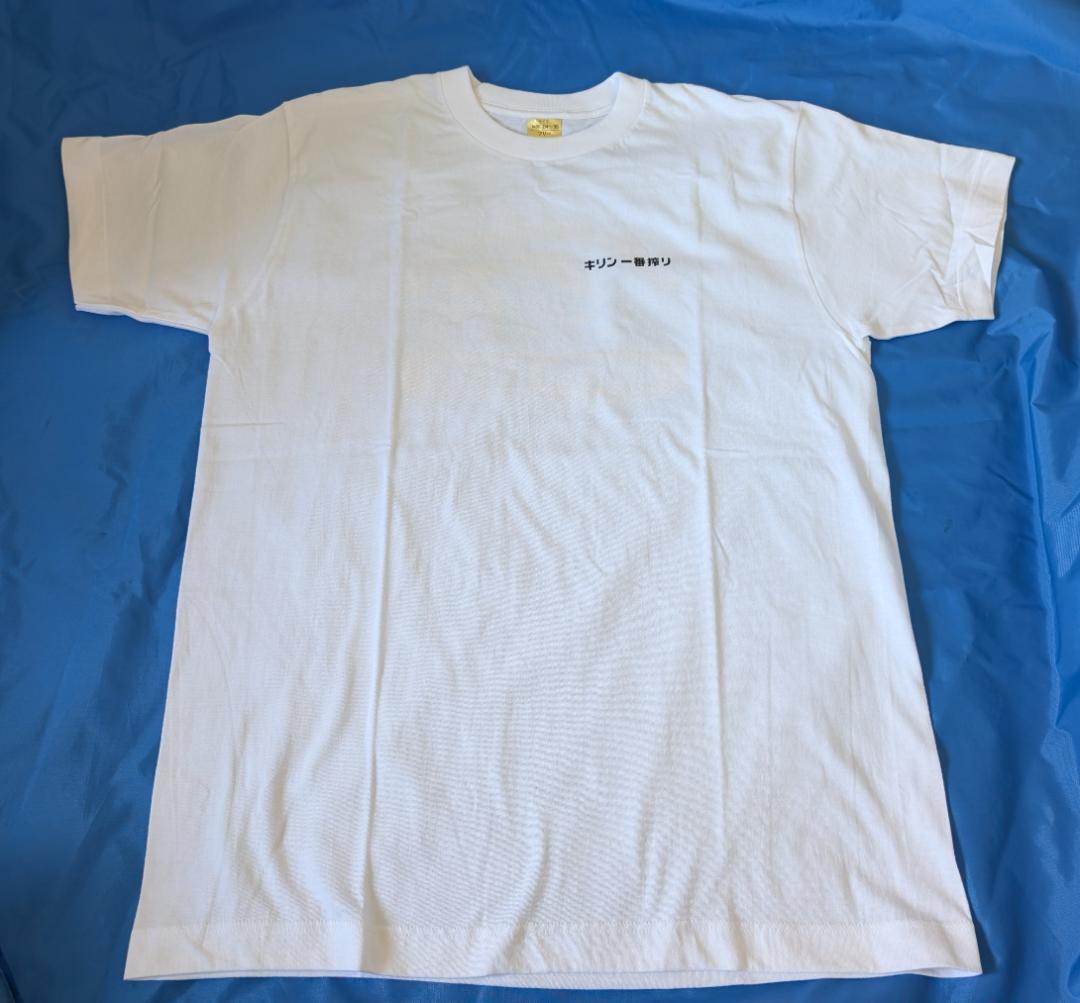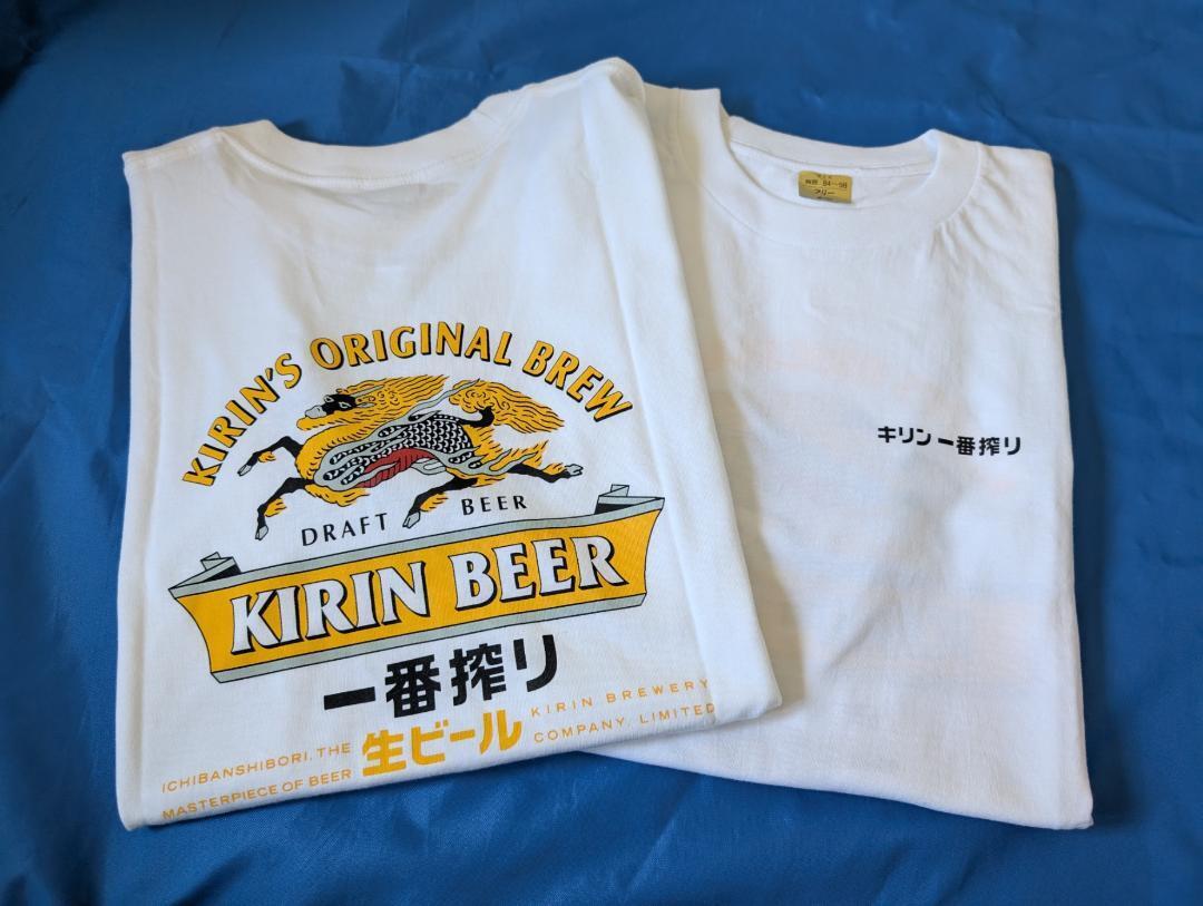 KIRINビールのロゴがプリントされたホワイトTシャツ。