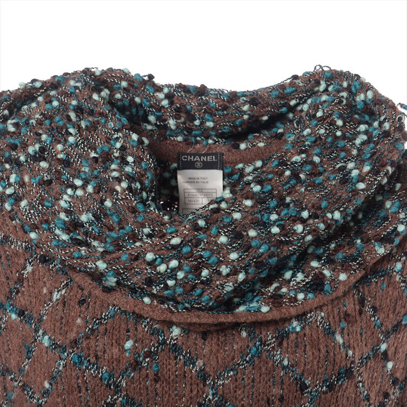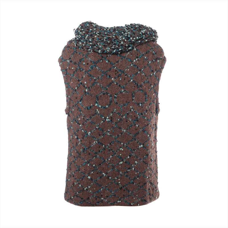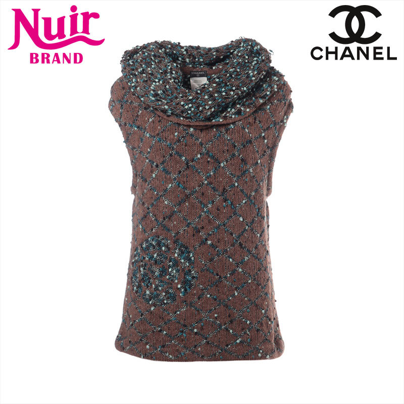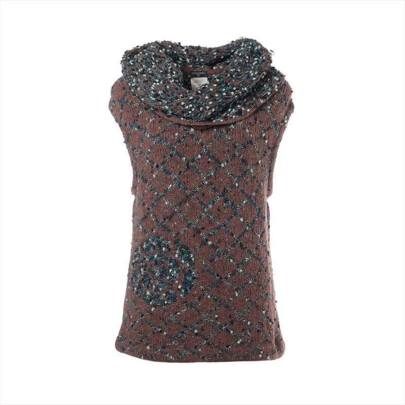 シャネル CHANEL ニット ウール 01A 2001年 ノースリーブ タートルネック カメリア ブラウン